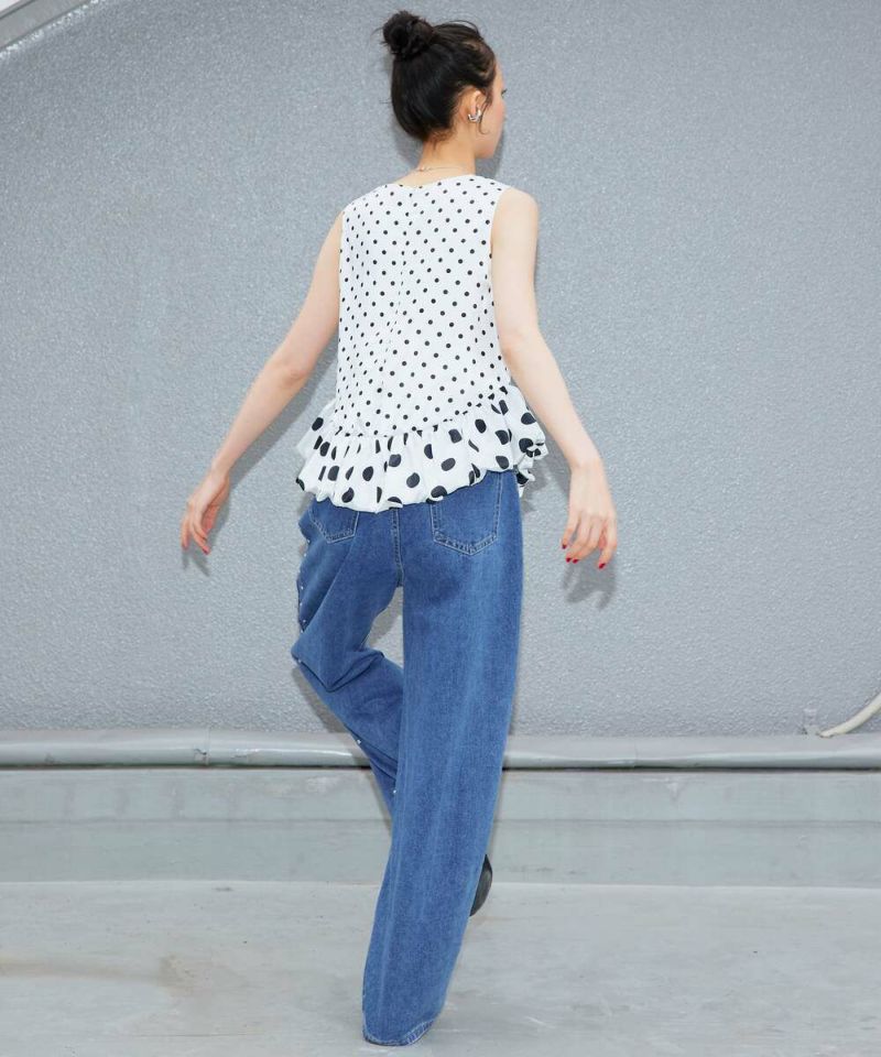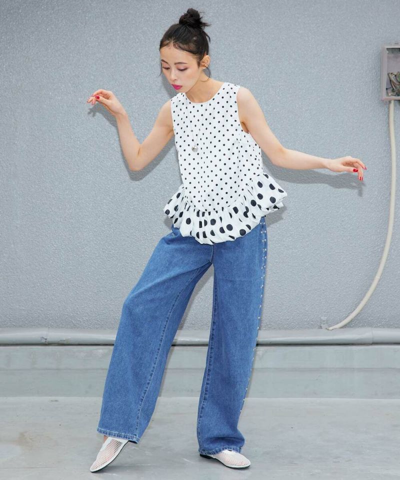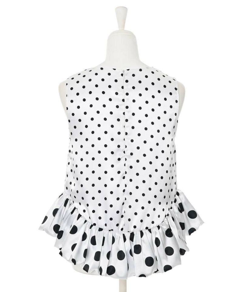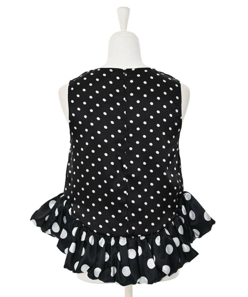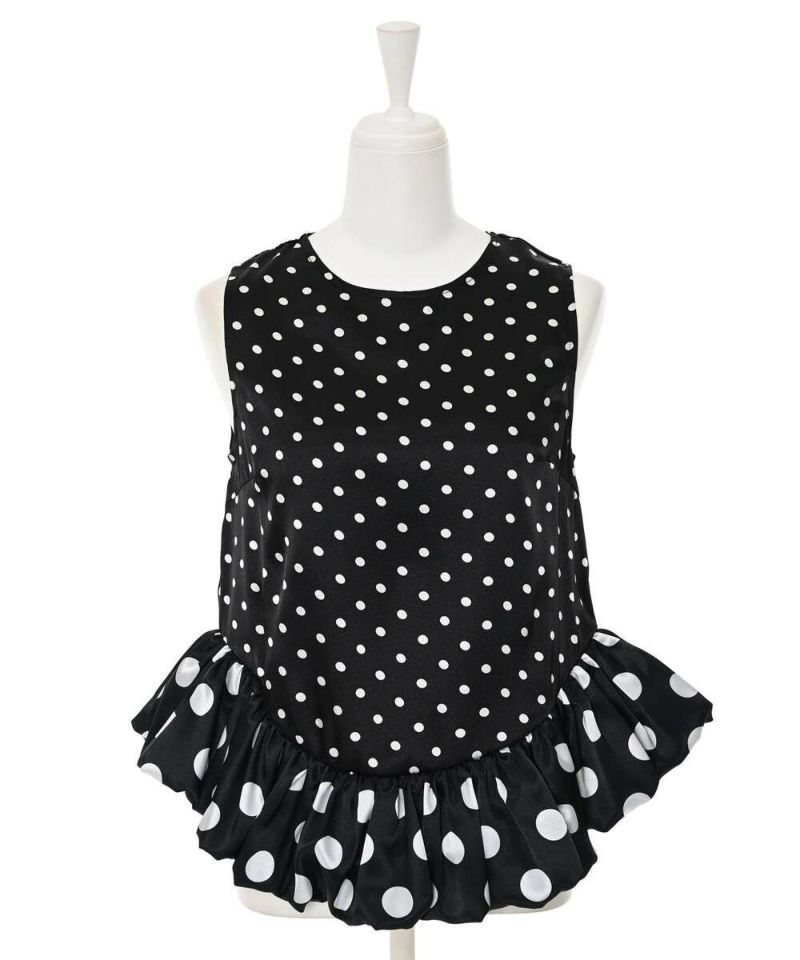 ドット柄をバルーンシルエットに落とし込み、身頃とバルーン部分を少し変えることで、フェミニン×モードな甘辛スタイルに仕上げました。 フェミニンな印象のドット柄ですが、光沢感のあるサテン生地を採用することで上品な印象をプラスしながらも◎ カジュアルになりやすい春夏のコーディネートにメリハリとなる一枚です。