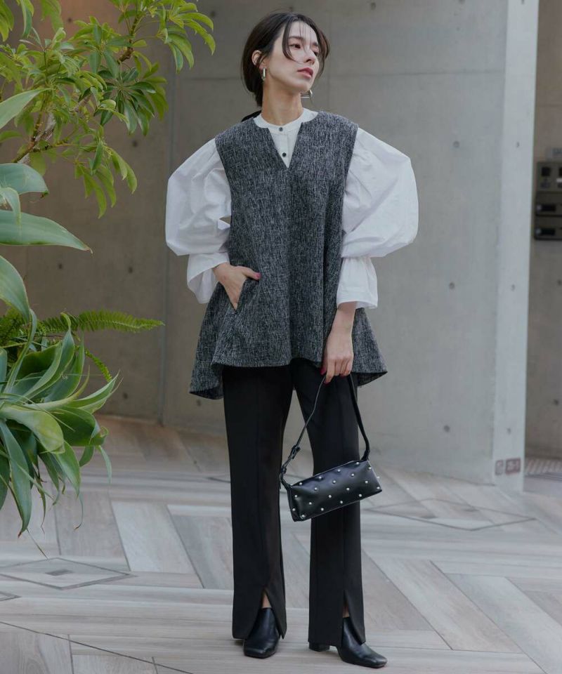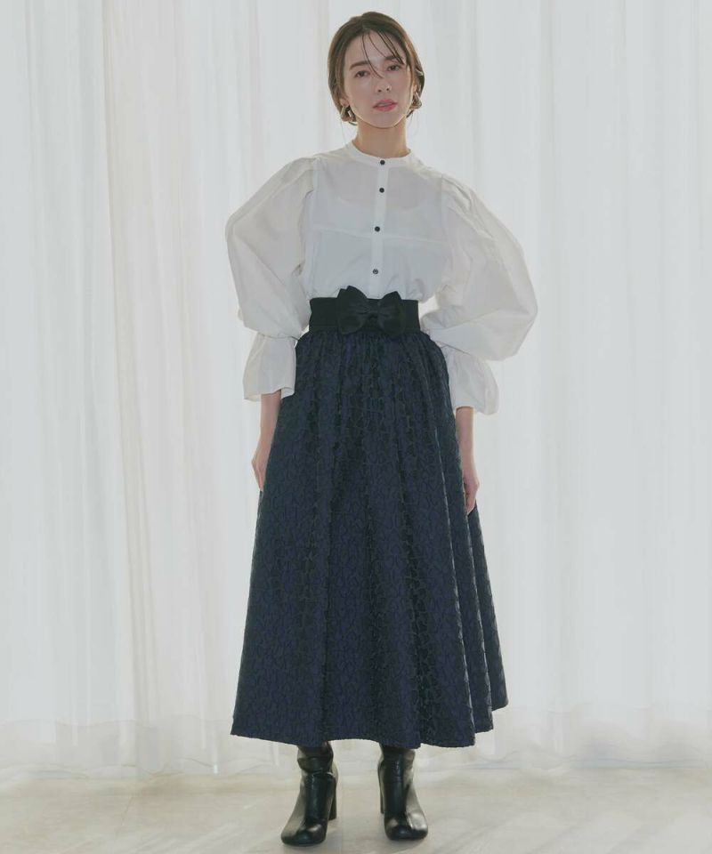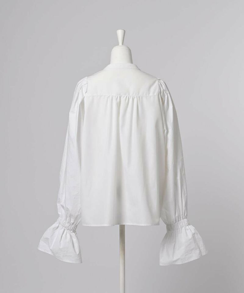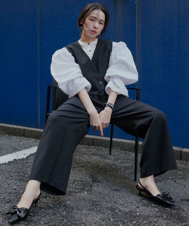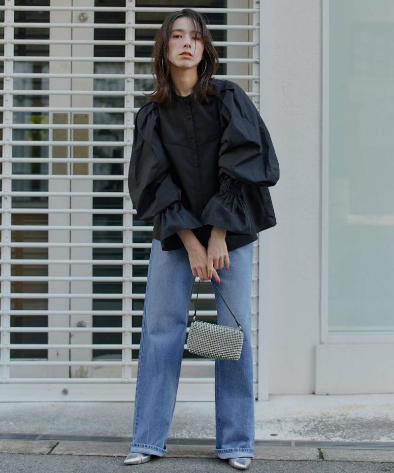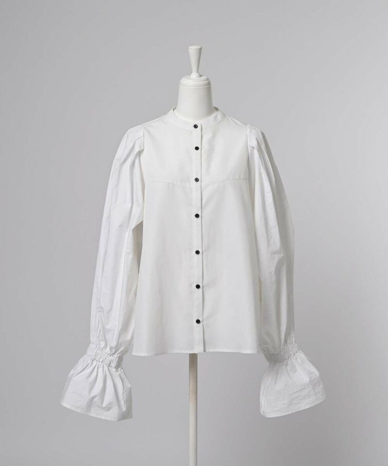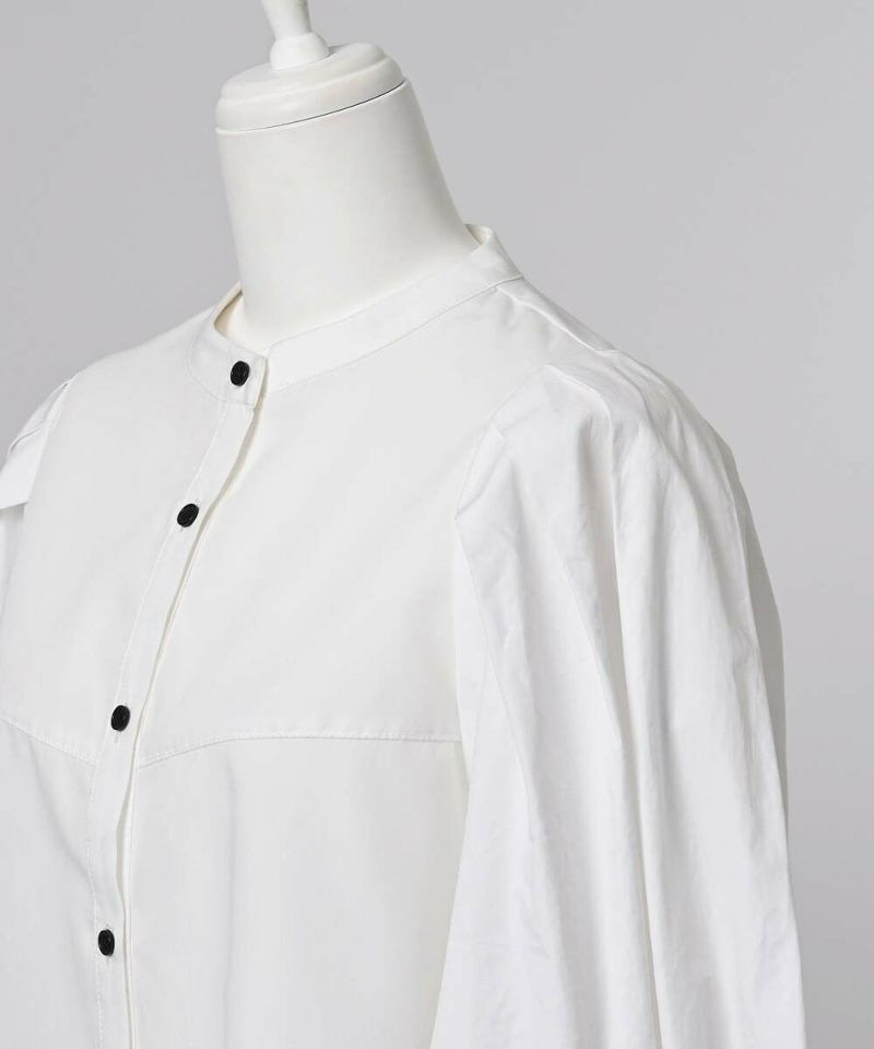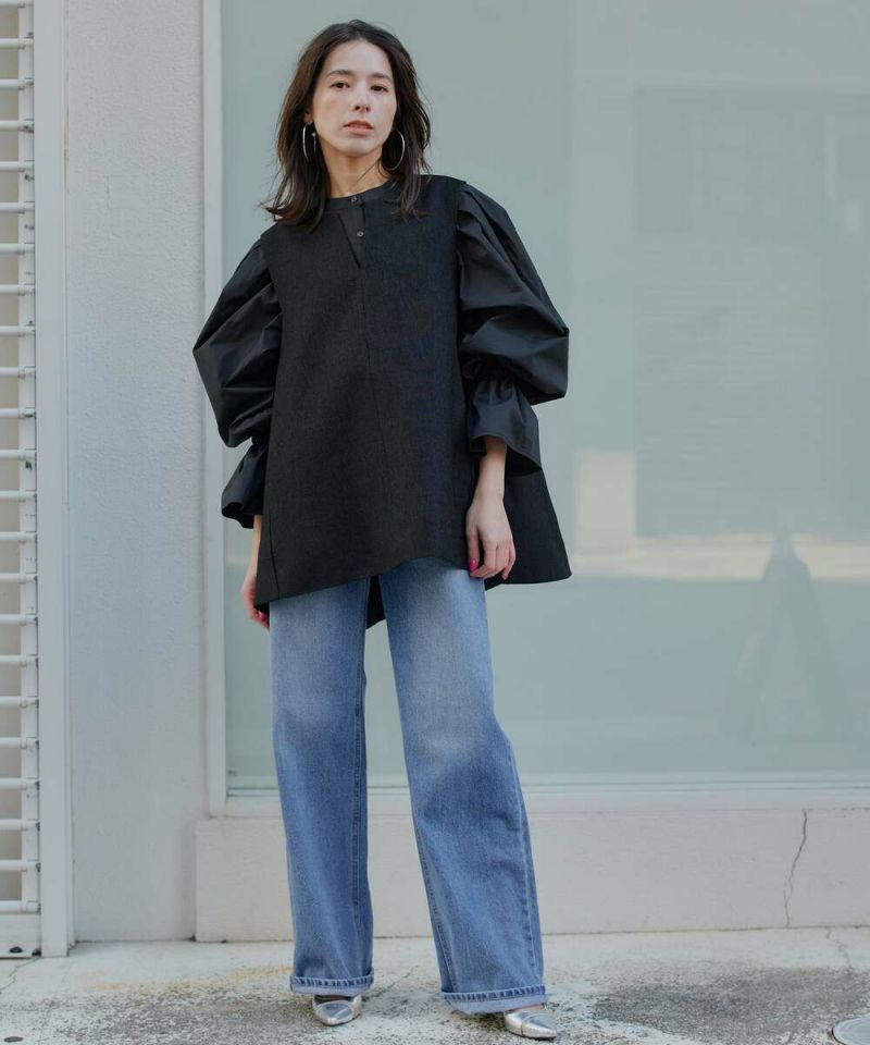 肩を覆うようにタックを施したボリュームたっぷりのスリーブデザインが魅力のブラウス。袖には軽やかでありながらシルエットをキープする素材を採用し、身頃にはふわりと揺れながらボディラインをひろわないライトな着心地の素材を採用することで、異素材をドッキングさせた理想の着心地が叶うアイテム。袖口のゴム切り替えでふわっと広がるカフスは、長袖・七分丈・半袖と袖丈を自由に調整でき、ロングシーズン着用可能。ノーカラーの上品なシルエットとのバランスを取ることで一枚ではもちろん、オールインワン・ワンピース・ベストなどのレイヤードスタイルにも取り入れやすい着回しの効くアイテムに。普段使いからオケージョンまで幅広いシーンで着用できます。【model】H160 B80 H85