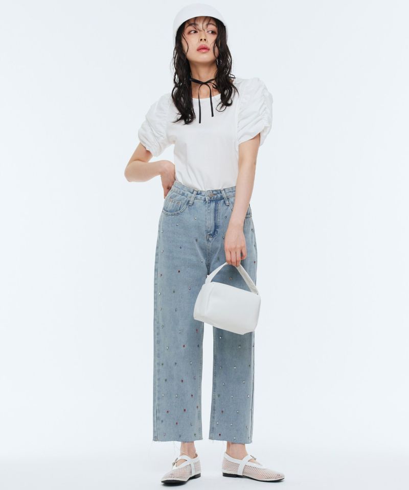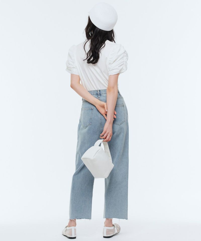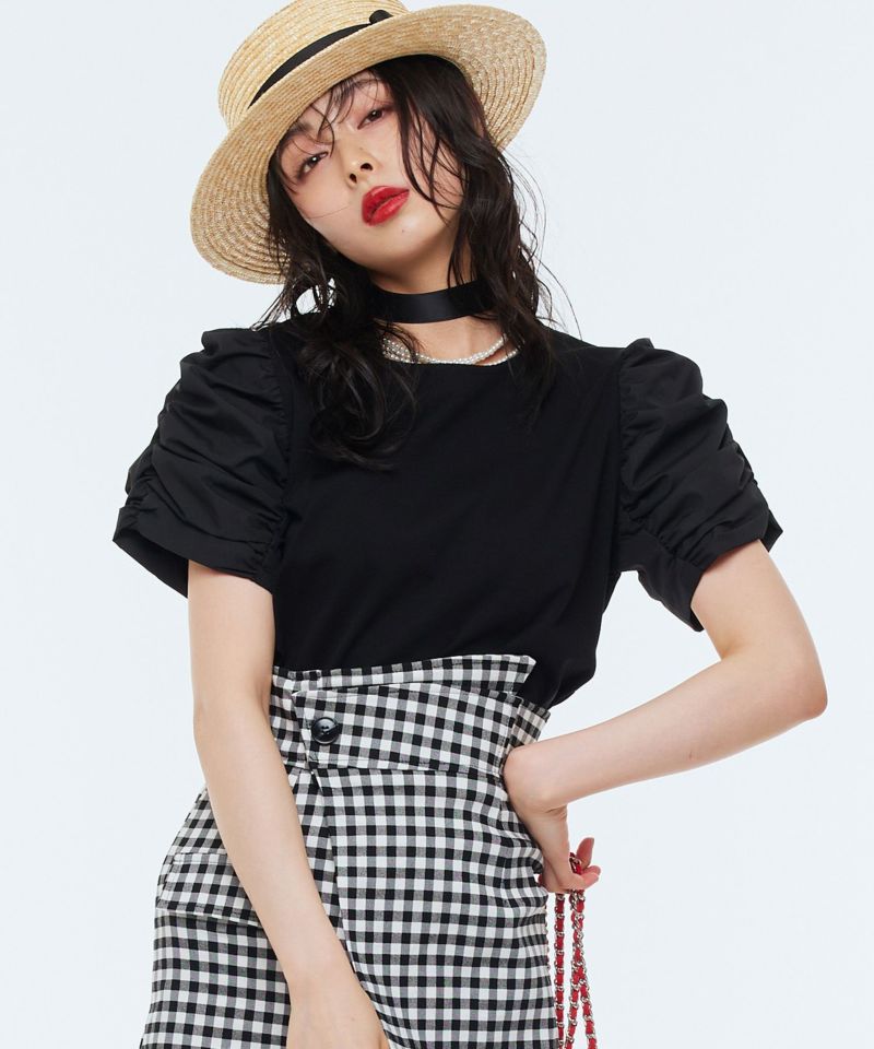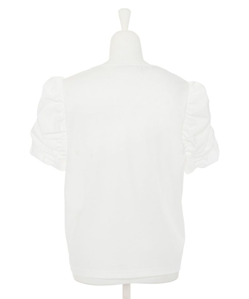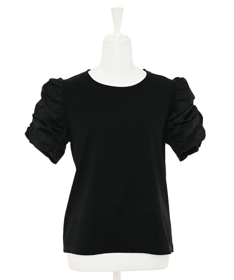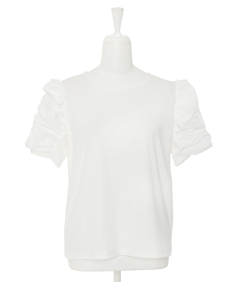 【PICCIN】心にフィットし、人を幸せにする洋服を。心まで作用するような洋服でありたいとPICCINは1990年に誕生して以来、かなりじっくりこだわった洋服作りをしているブランド。シャーリングを施しふんわりとしたパフスリーブが、可愛らしさと華やかさのあるトップス。本体はさらりとしたカットソー素材、 袖には、布帛生地をドッキングし、着心地も◎ コンパクトな身幅とボリュームのある袖でどんなボトムスにも合わせやすいアイテムに。【model】H165 B78 H83