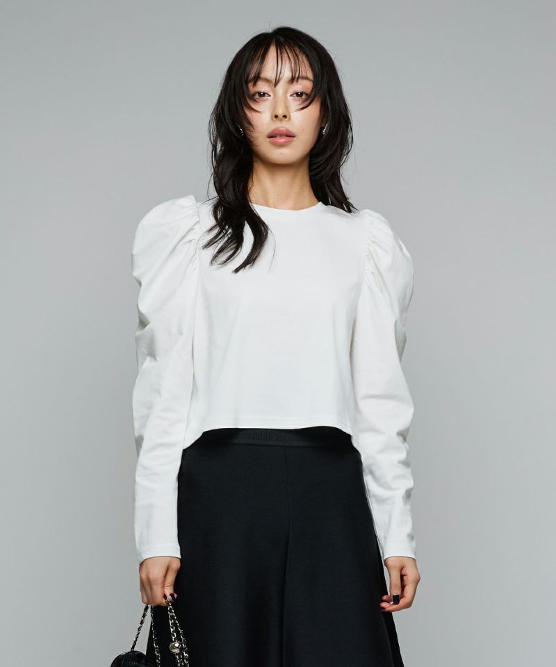 大胆にあしらわれたボリュームのある袖が目を惹くトップス。肩から袖にかけてのふんわりとしたシルエットが、着こなしに華やかさと存在感をプラスします。