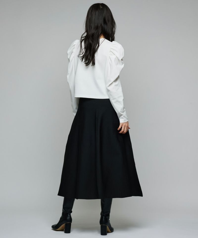身体に程よくフィットするタイトな身頃に対し、袖にボリュームをもたせることで、女性らしいメリハリのあるシルエットを作りだします。また、程よく開いたラウンドネックが、顔周りをすっきりと見せてくれ落ち着いた大人の印象に。