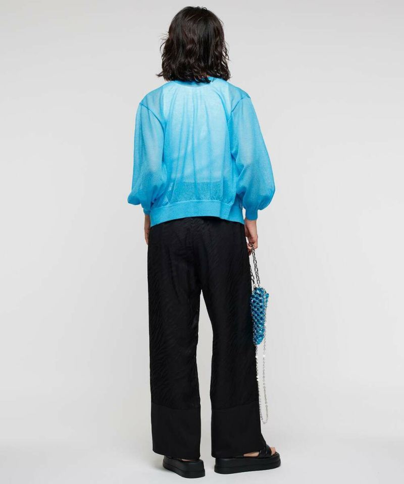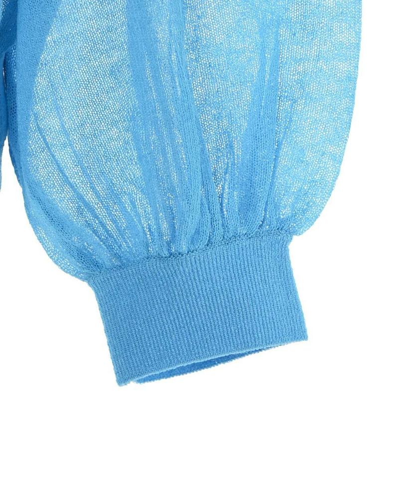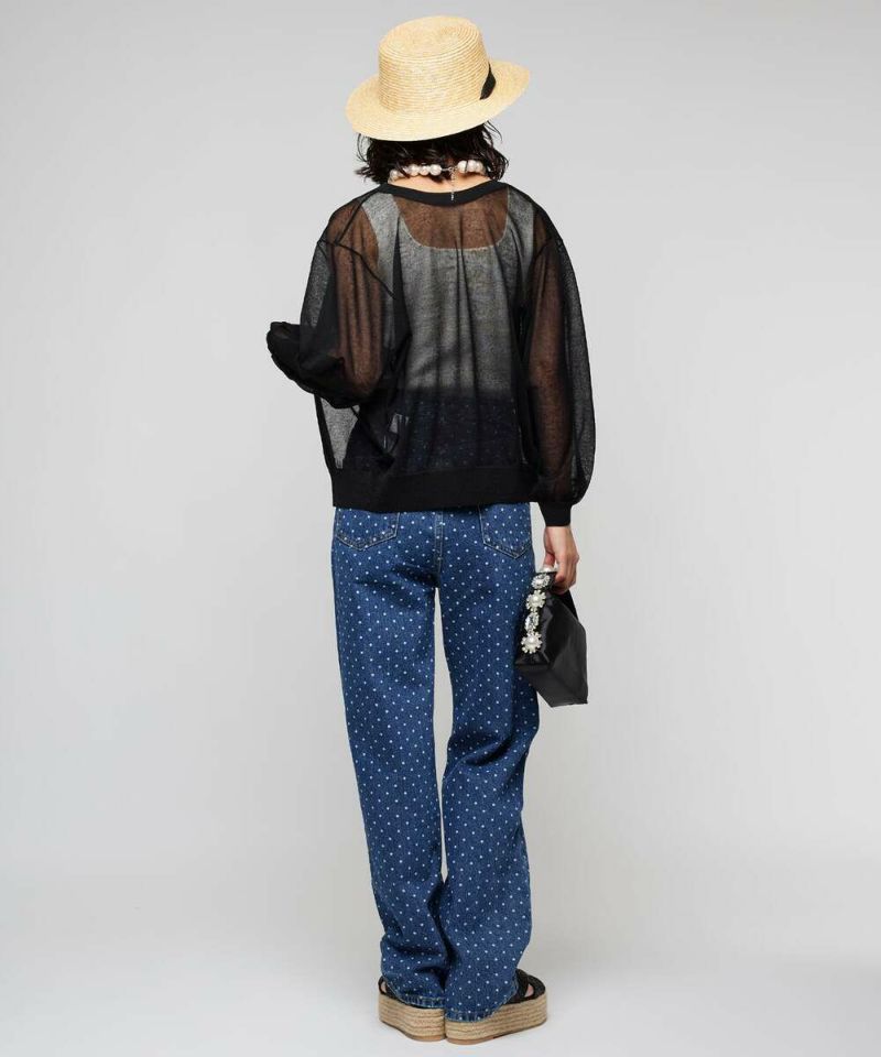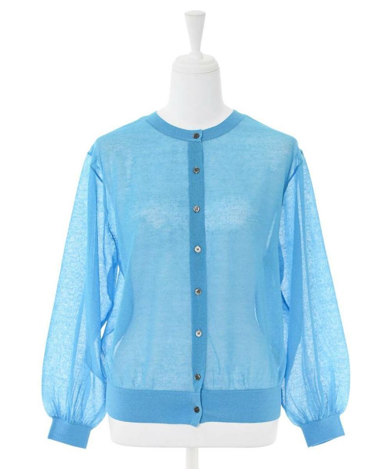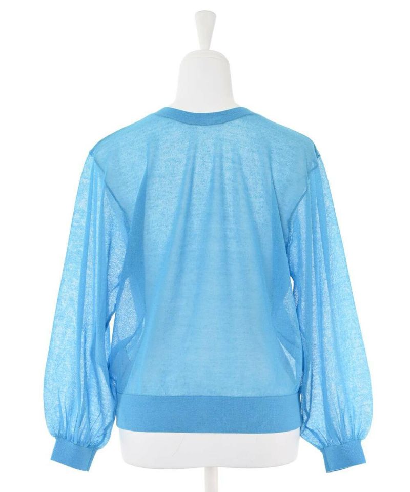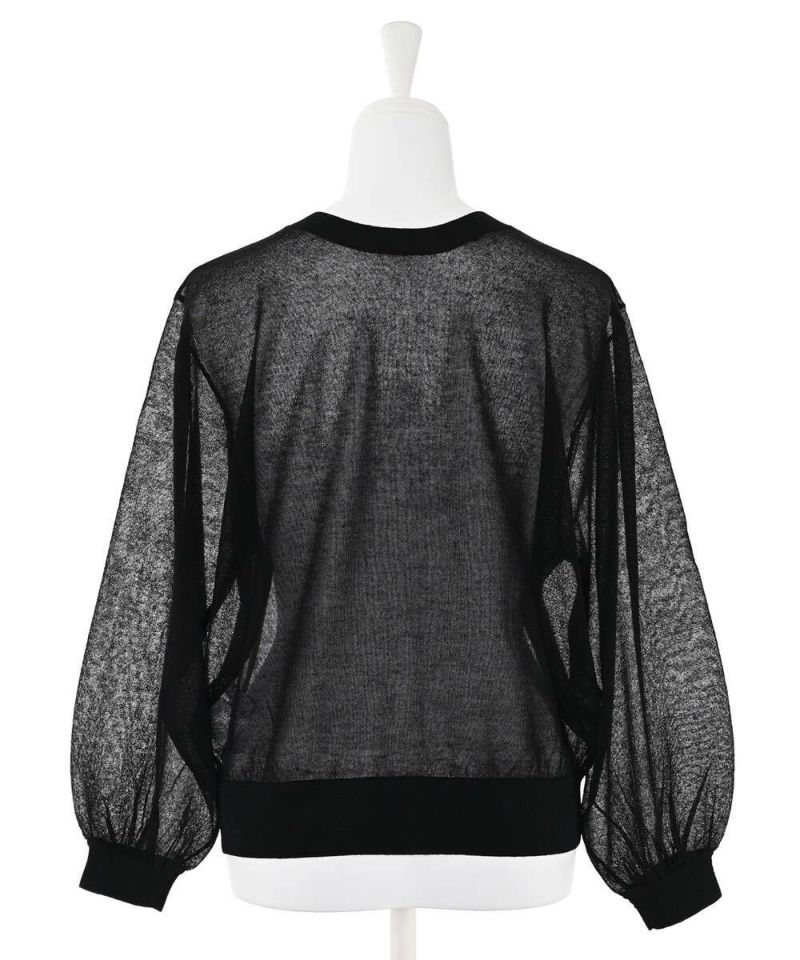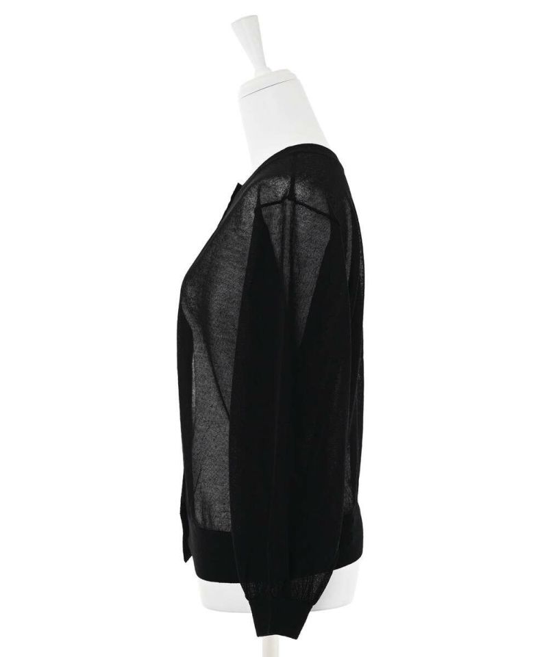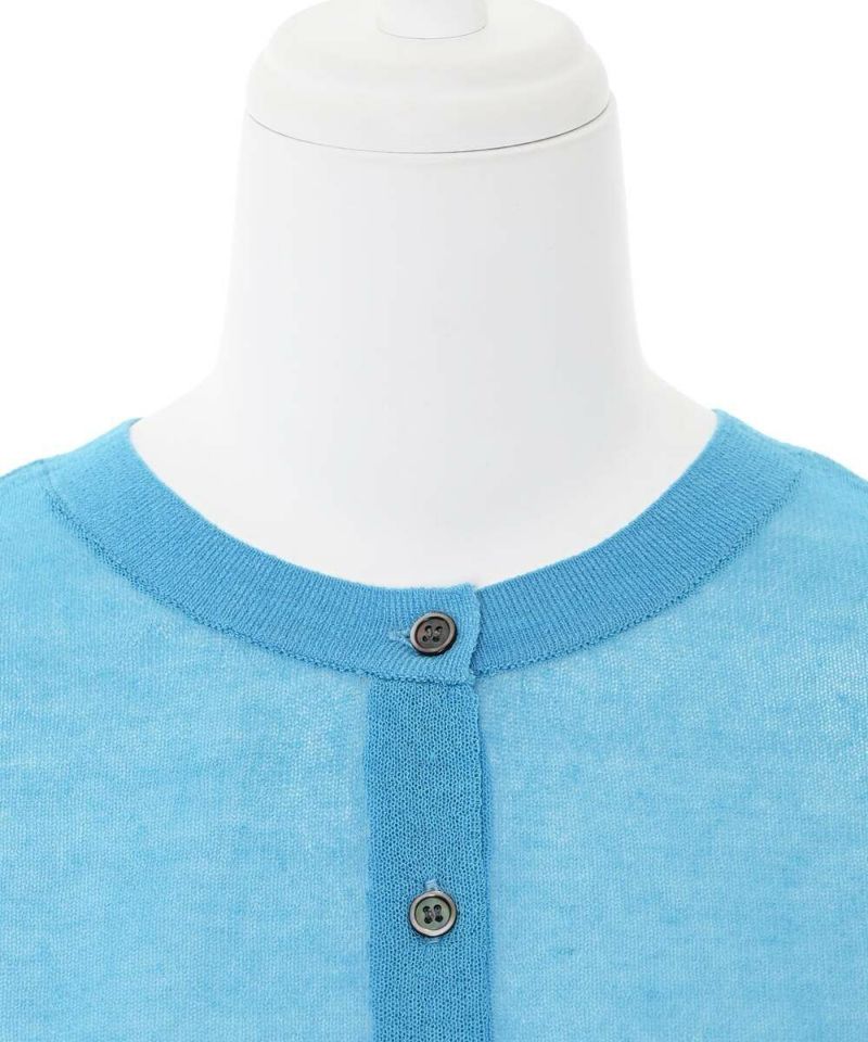 前後2WAYで着用できるシアーカーディガン。ボタンを前に持ってくるとカーディガンに、後ろに持ってくるとトップスに。シアー素材で風通しが良く、程よい肌見せが涼しげな印象に。ボタンの開閉も可能なので、羽織りとしても活躍するアイテム。【model】H156H163 B78 H84