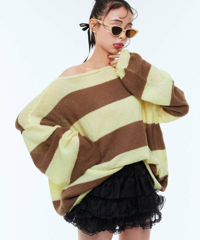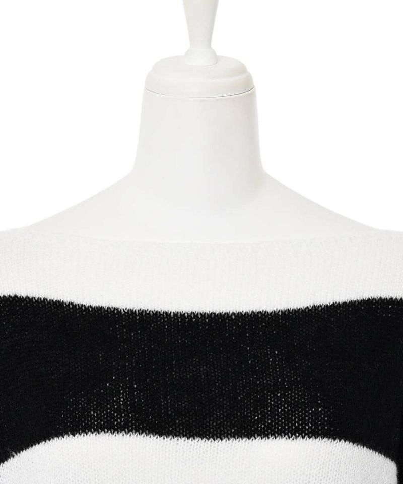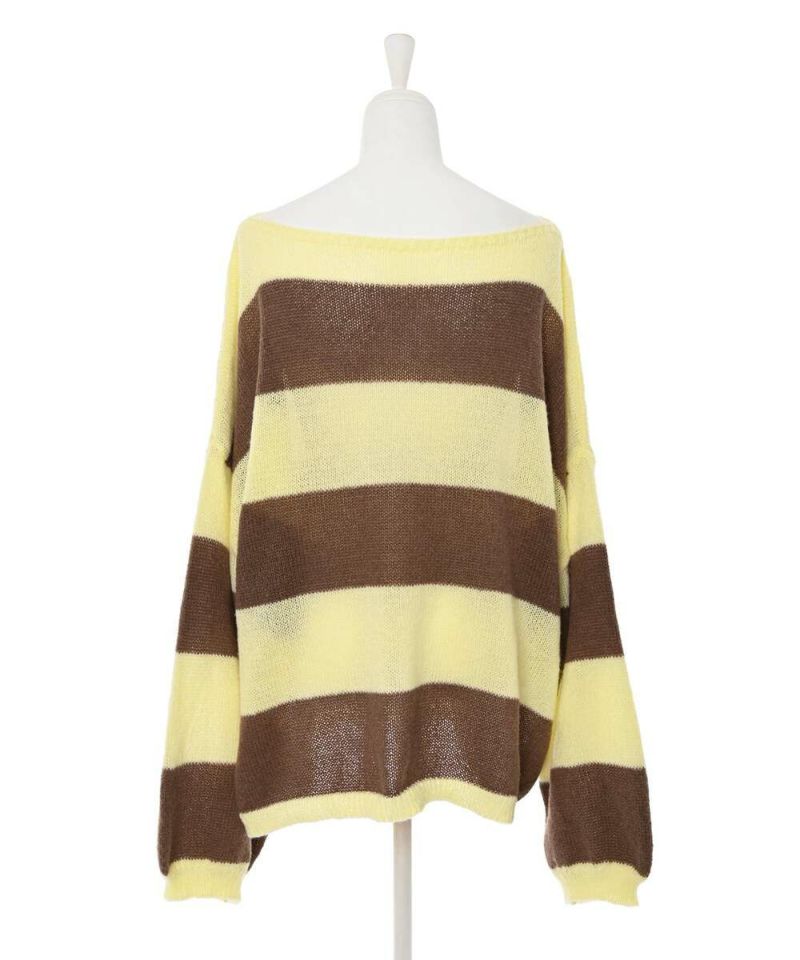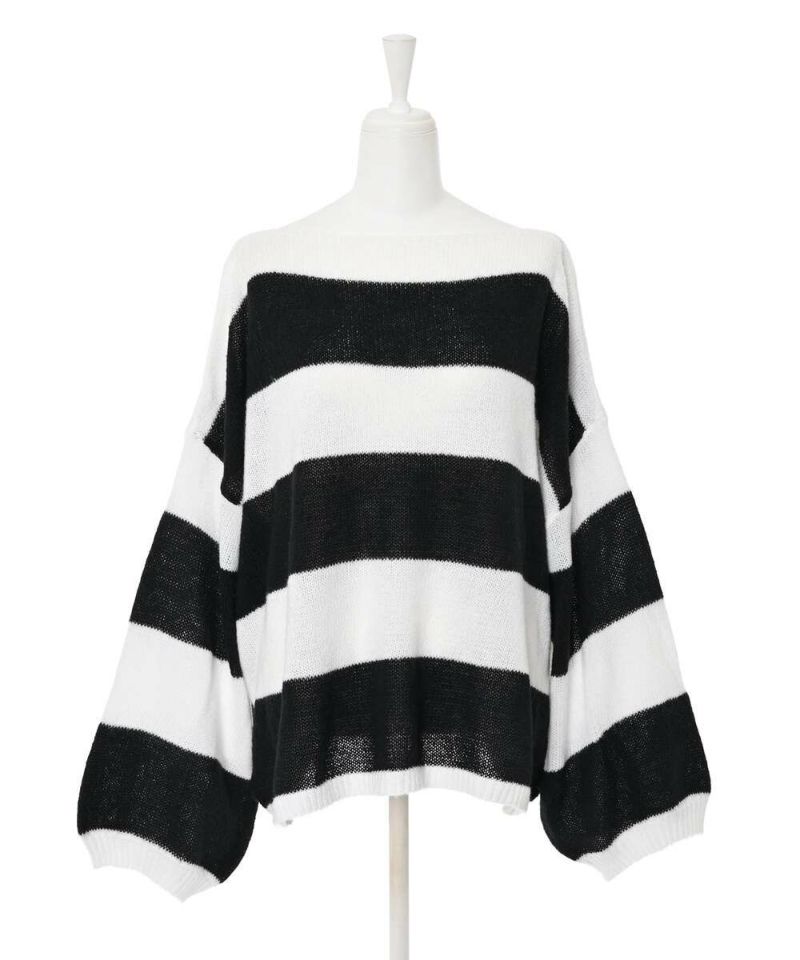 存在感のあるオーバーサイズと太めのボーダーデザインで、旬な着こなしに仕上がるニット。袖口のバルーンシルエットが可愛らしく、ゆるっとしたネック部分から見える鎖骨が女性らしさをプラス。薄手のニット素材でロングシーズン着用可能。※素材の性質上、サイズ表記に多少の誤差がございます。【モデル】:H165 B78 H83 / H163 B78 H84