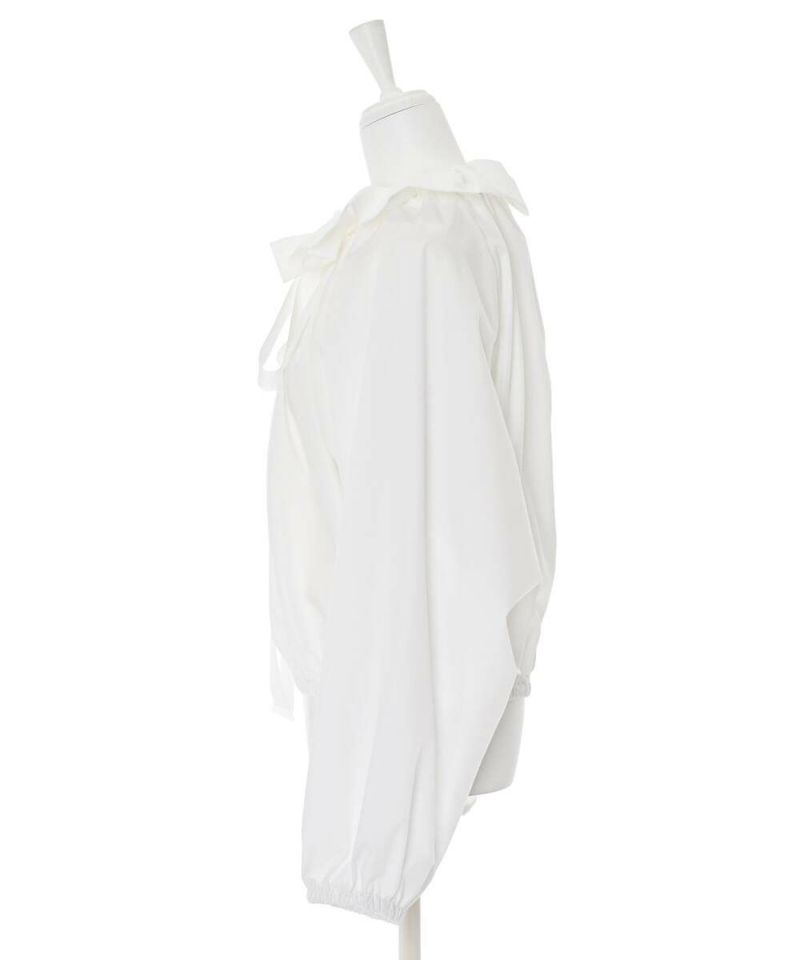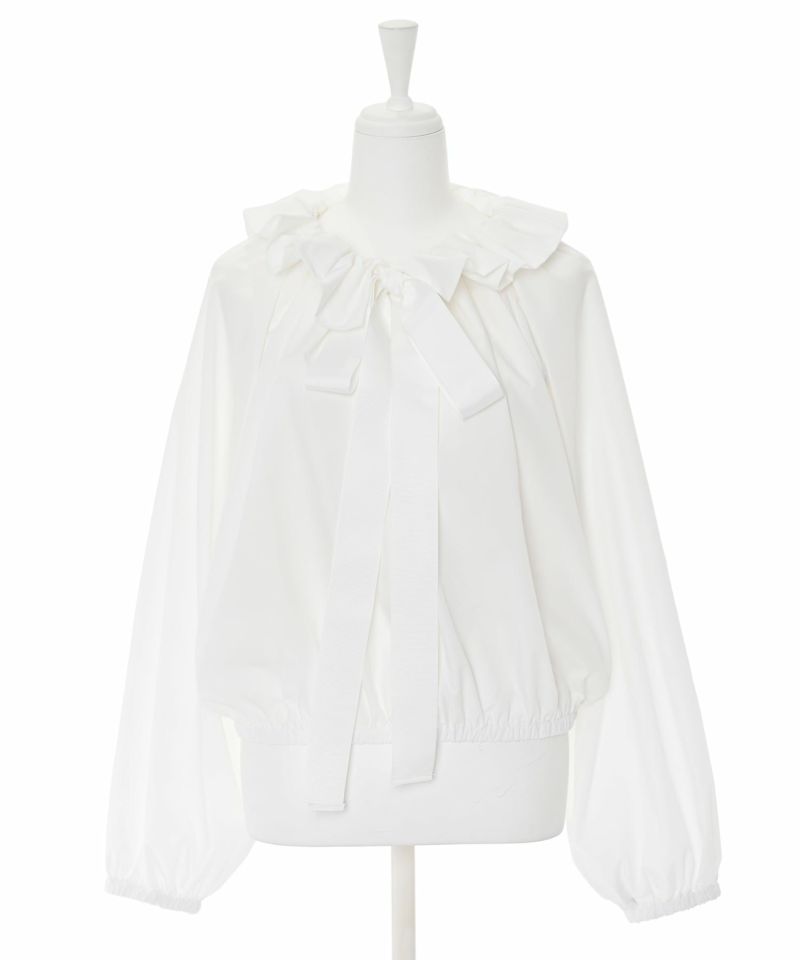 【PICCIN】心にフィットし、人を幸せにする洋服を。心まで作用するような洋服でありたいとPICCINは1990年に誕生以来、妥協せずこだわった洋服作りをしているブランド。フリルカラー&ロングリボンがフェミニンな印象のボリューム感たっぷりなブラウス。袖口と裾が絞ってあることでディティールが丸みを帯び、女性らしいシルエットに。ネック部分のリボンは調節可能なので、緩く結ぶとデコルテラインを綺麗見せしてくれる。Narcissusでは、ミニスカートやタイトなロングスカートで綺麗めに見せるのも◎あえてデニム合わせでカジュアルダウンしてもらうのもオススメ。