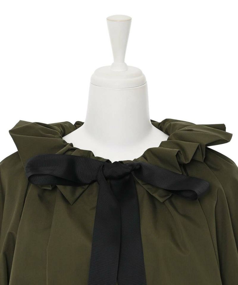 【PICCIN】心にフィットし、人を幸せにする洋服を。心まで作用するような洋服でありたいとPICCINは1990年に誕生以来、妥協せずこだわった洋服作りをしているブランド。グログランリボンの締め方具合で、色んな着こなしが楽しめる魅力のブラウス。布帛生地をたっぷりと使用し、ゆったりしたラグランスリーブやミニマムな着丈で 存在感のあるトレンドライクな一枚。【model】H165 B78 H83