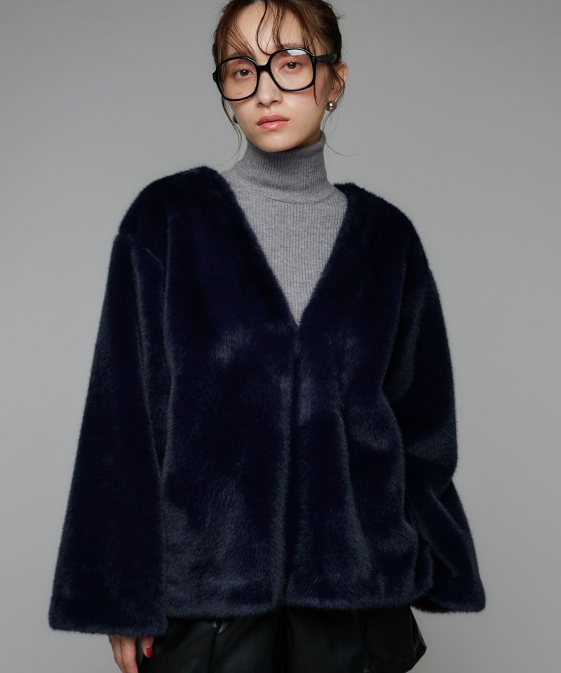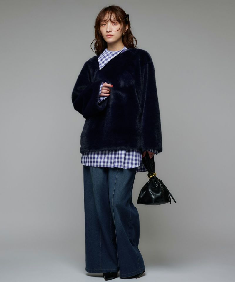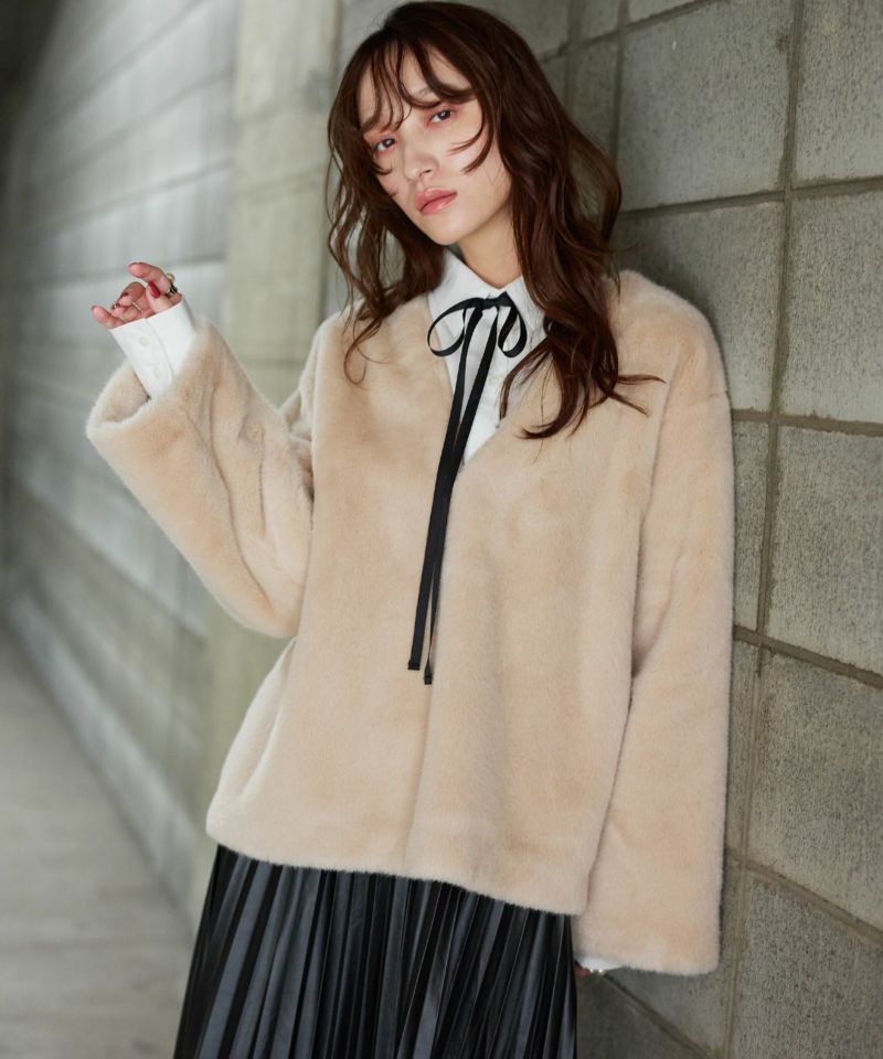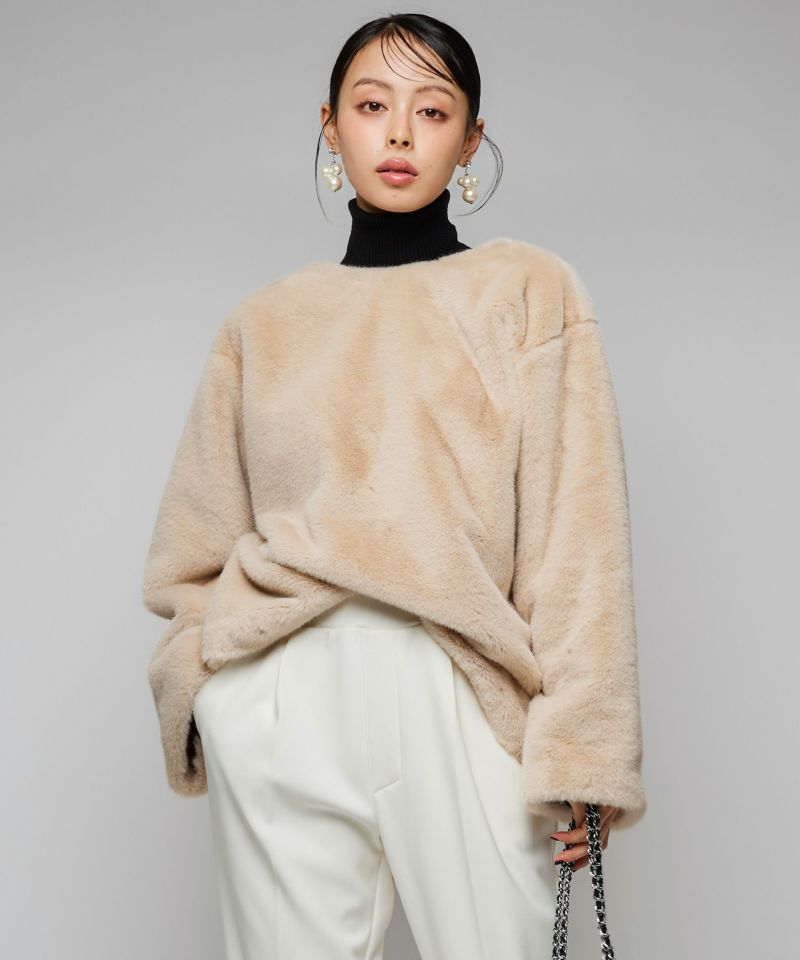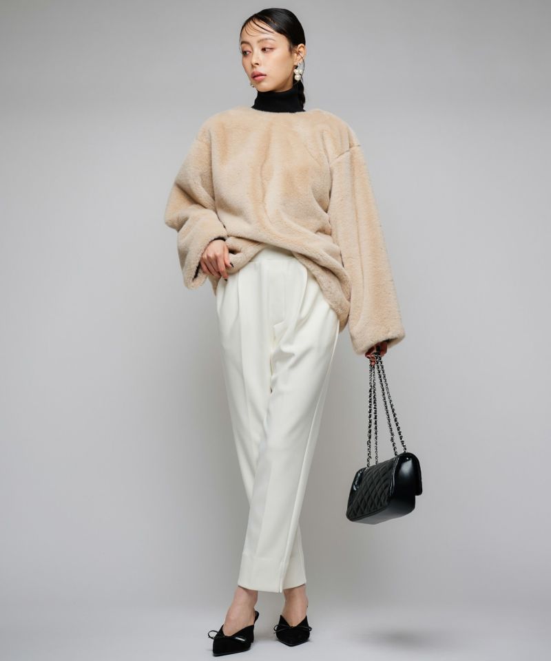上品な光沢と毛足の整ったファーが、シンプルなスタイリングにも“リッチ感”をプラス。