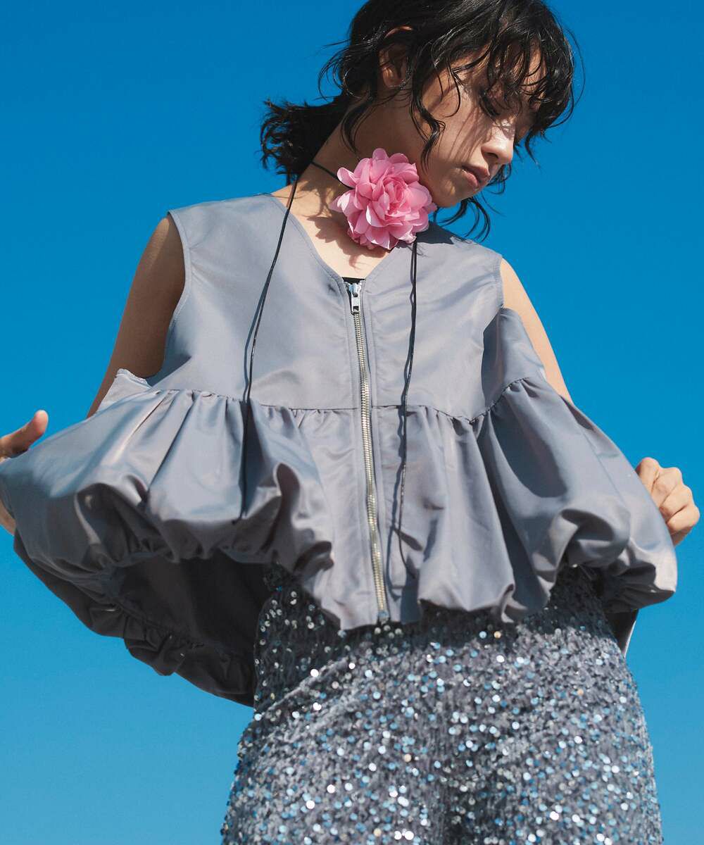 ポケットフリルペプラムベスト