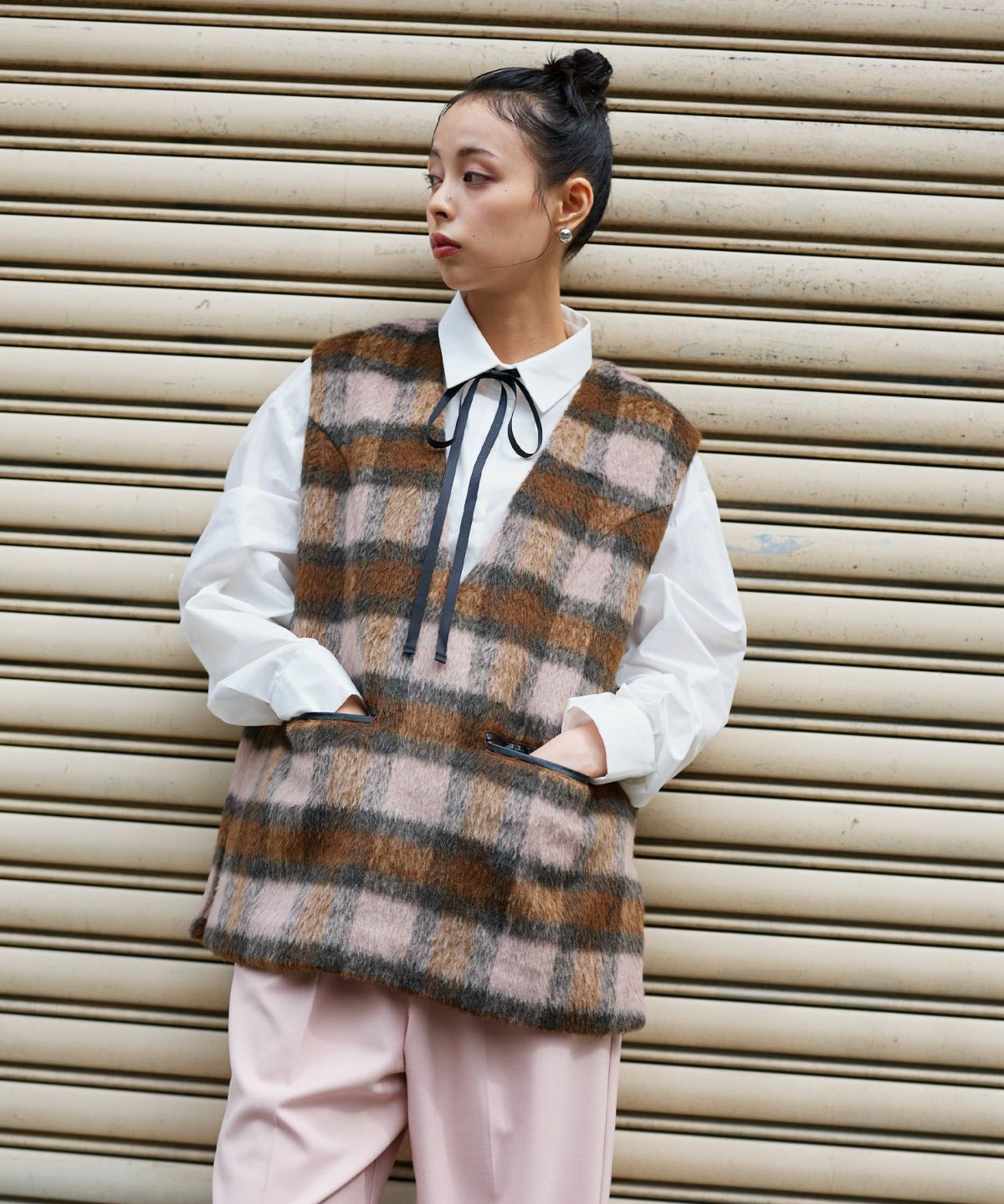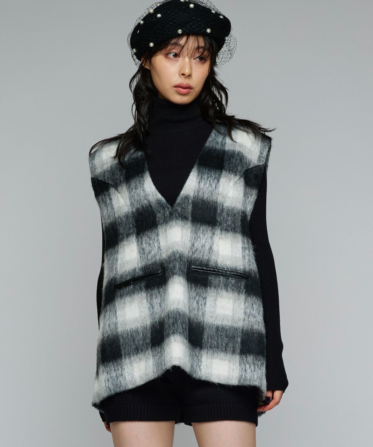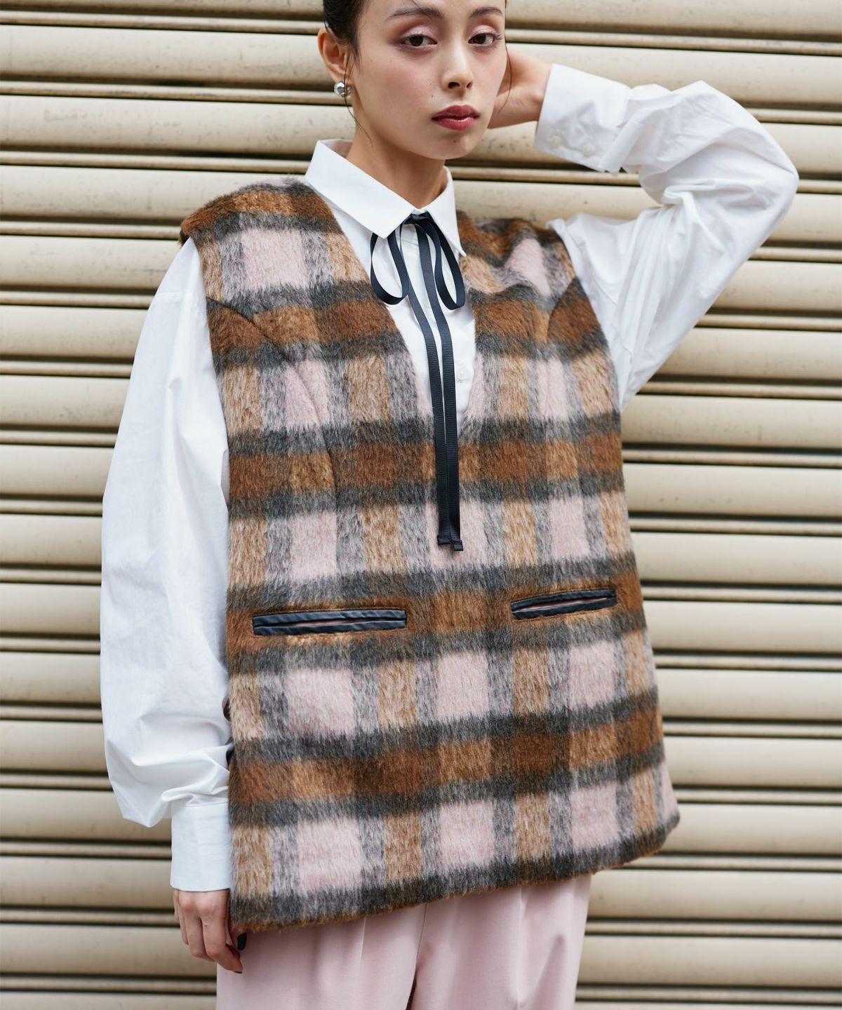チェックシャギーベスト