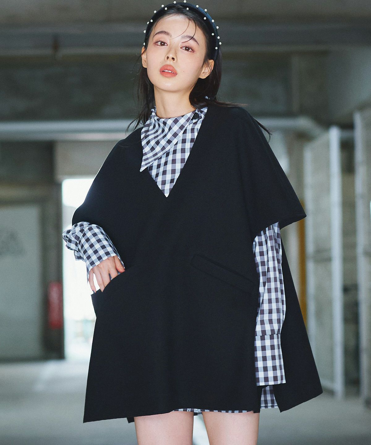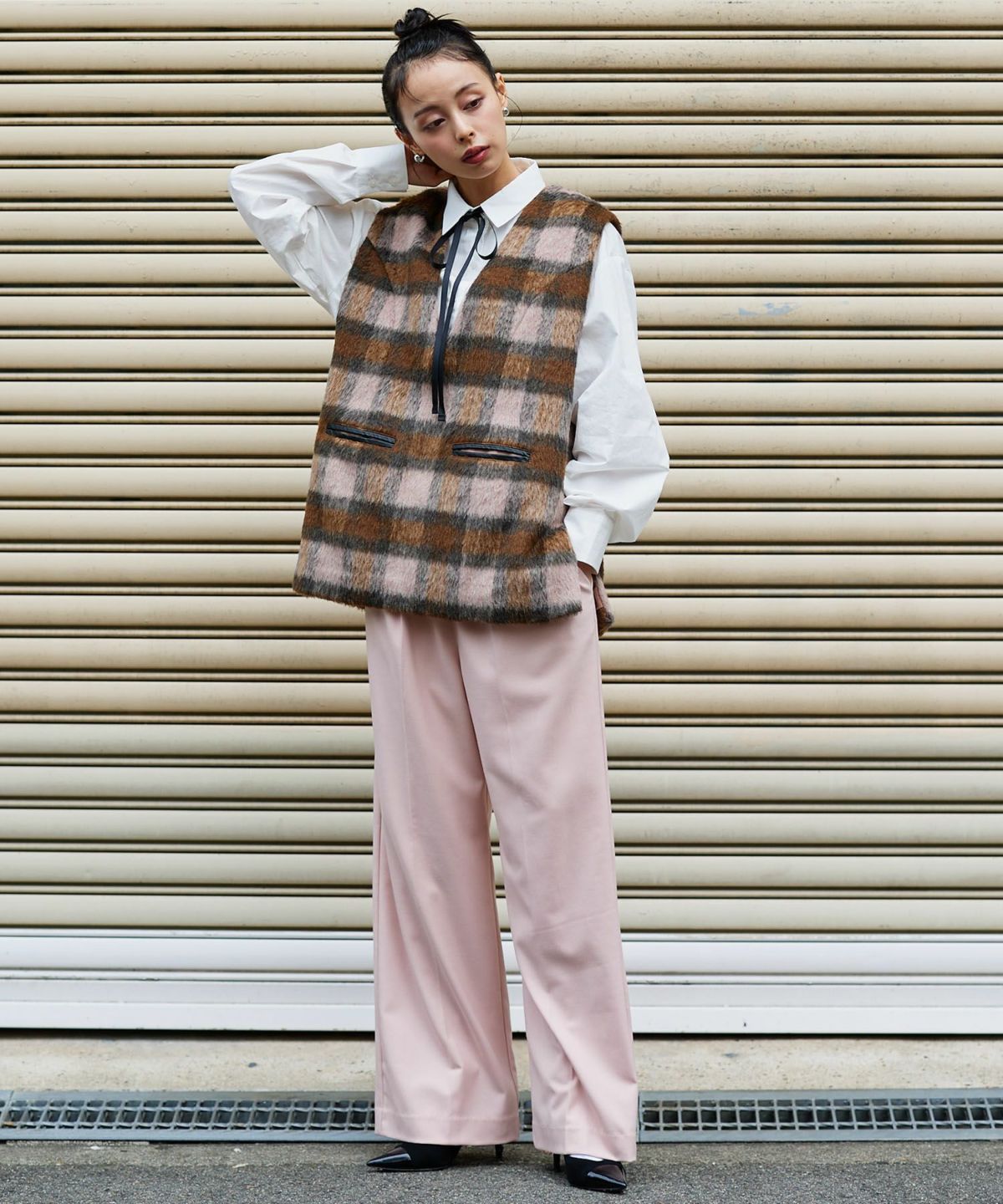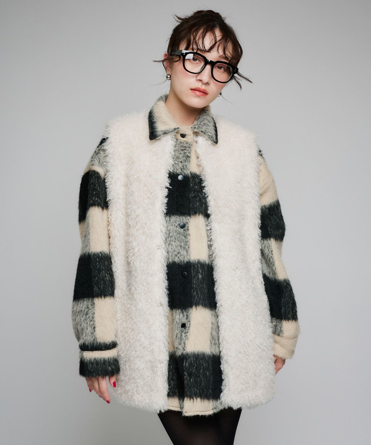 チェックシャギーベスト
