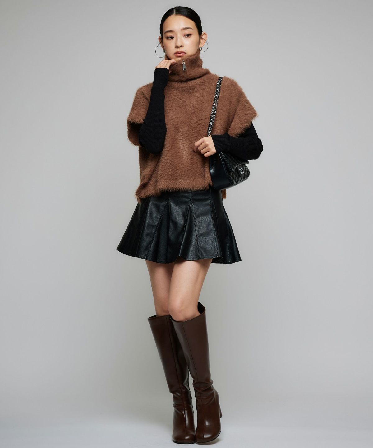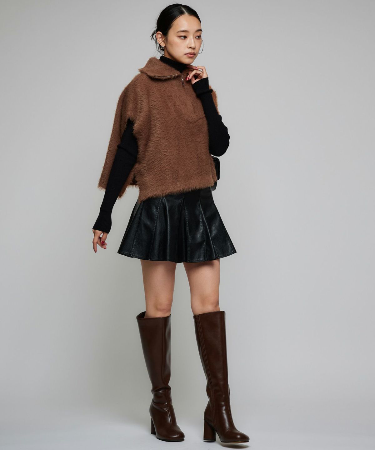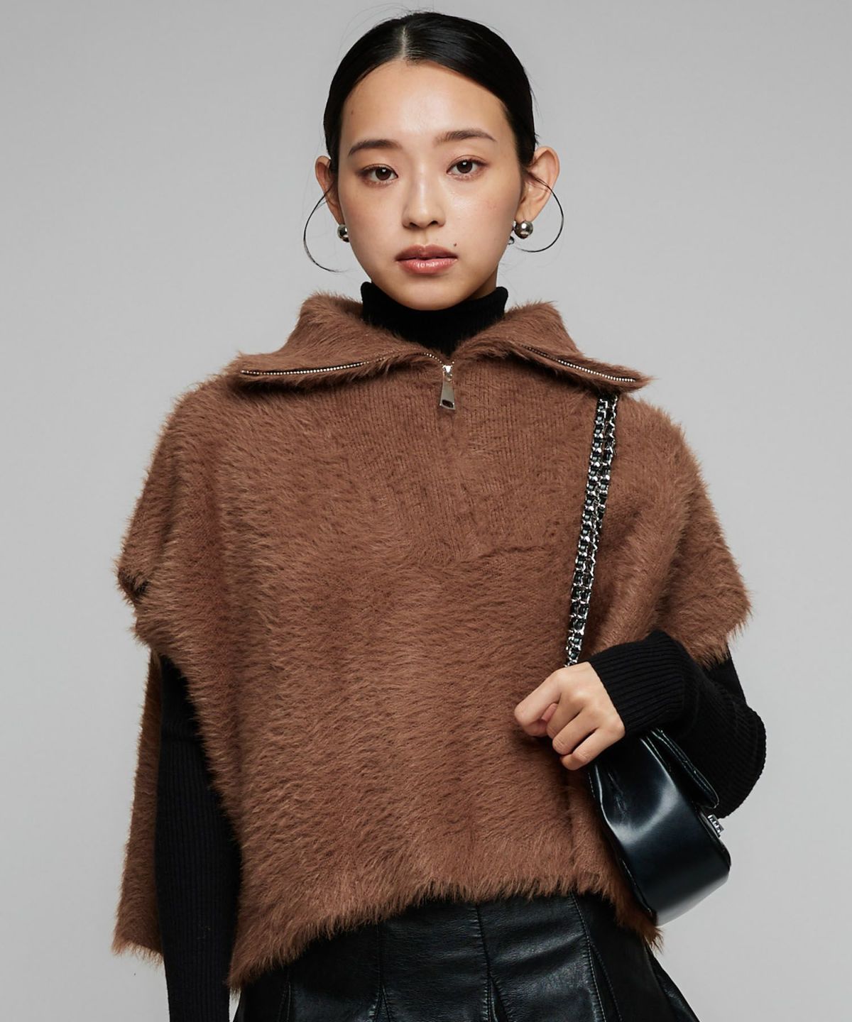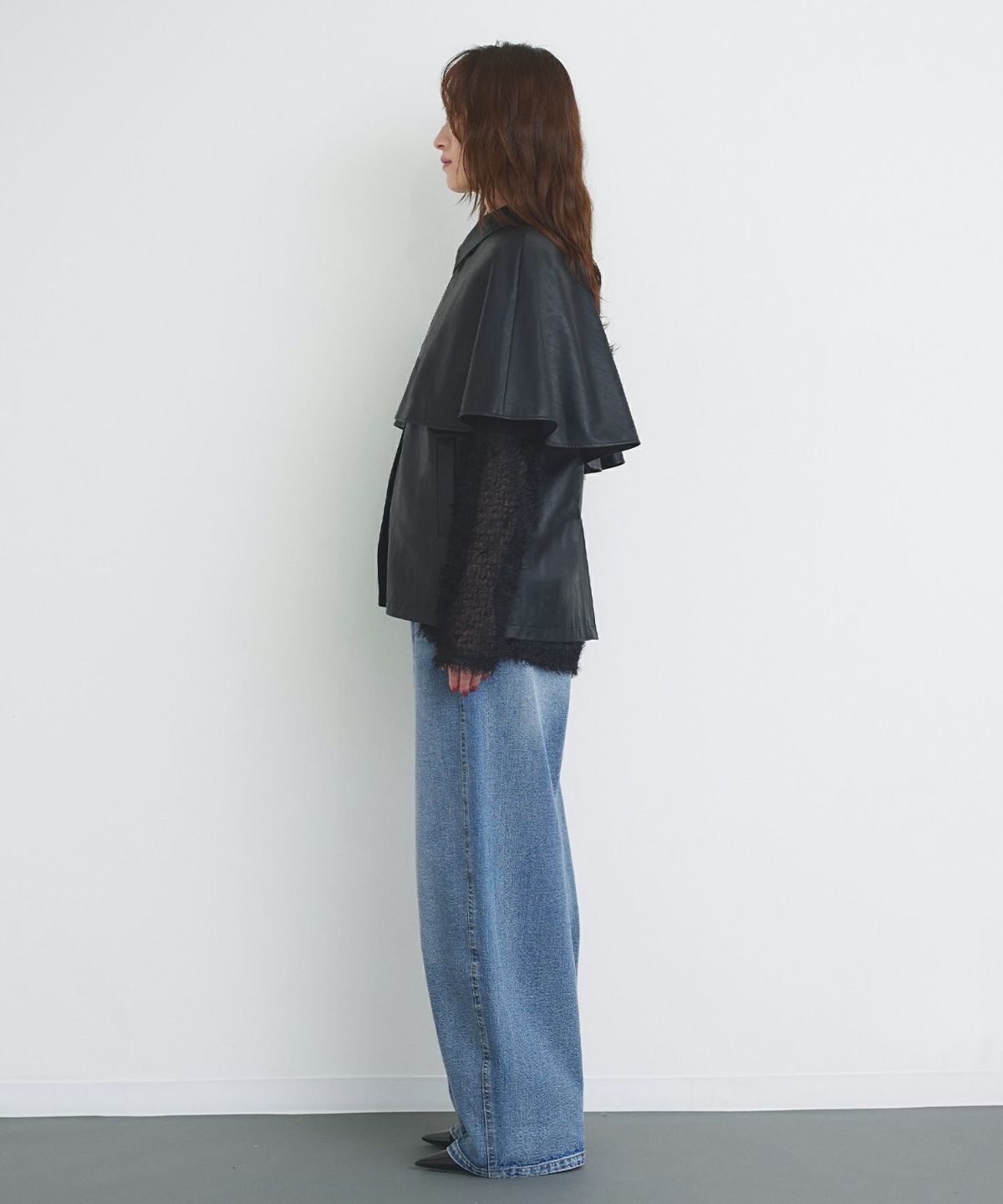 フェイクレザーケープベスト