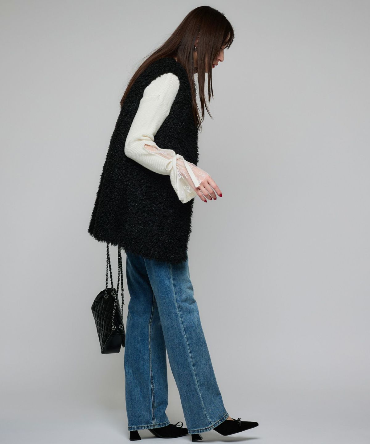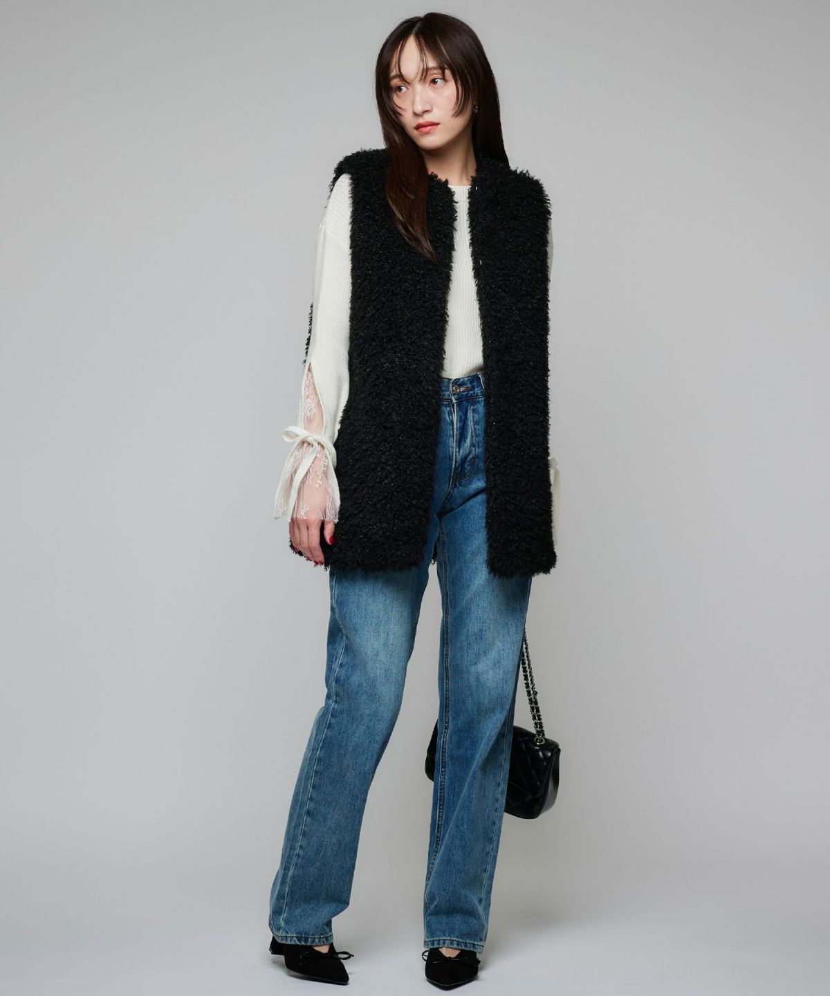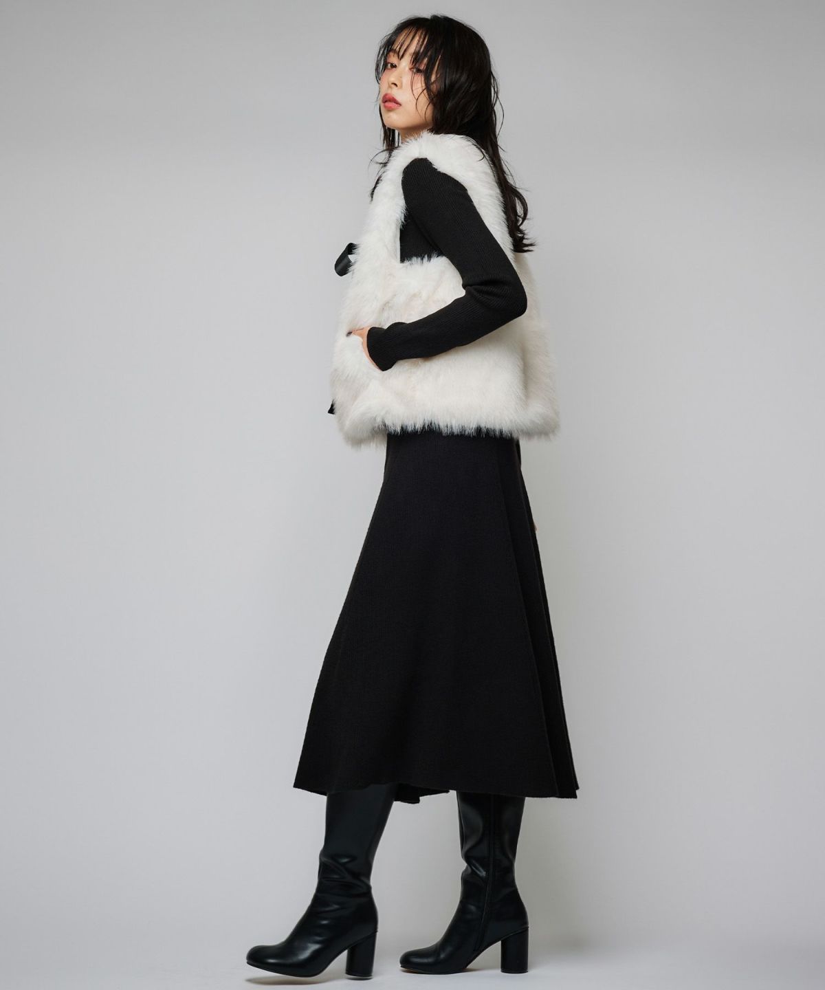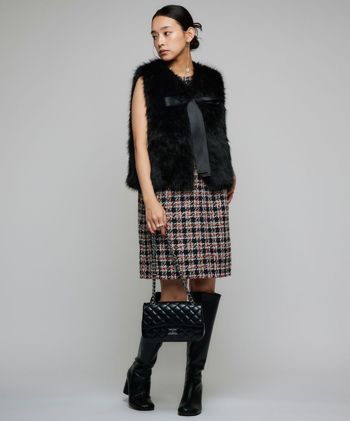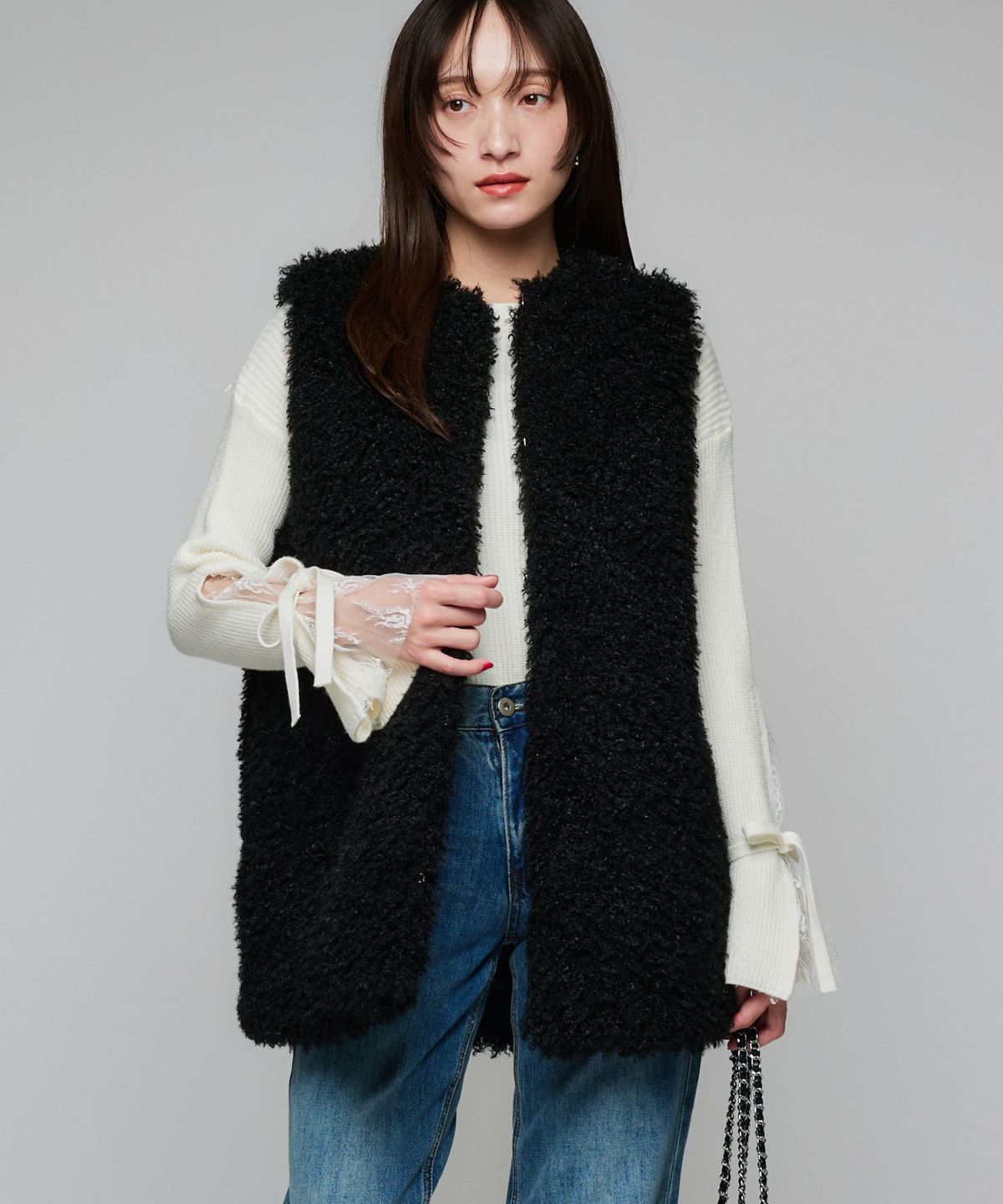 リボンフェイクファーベスト