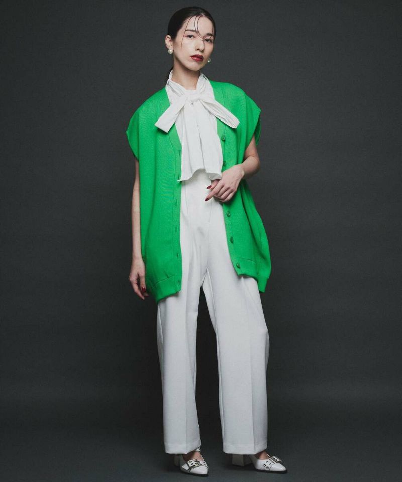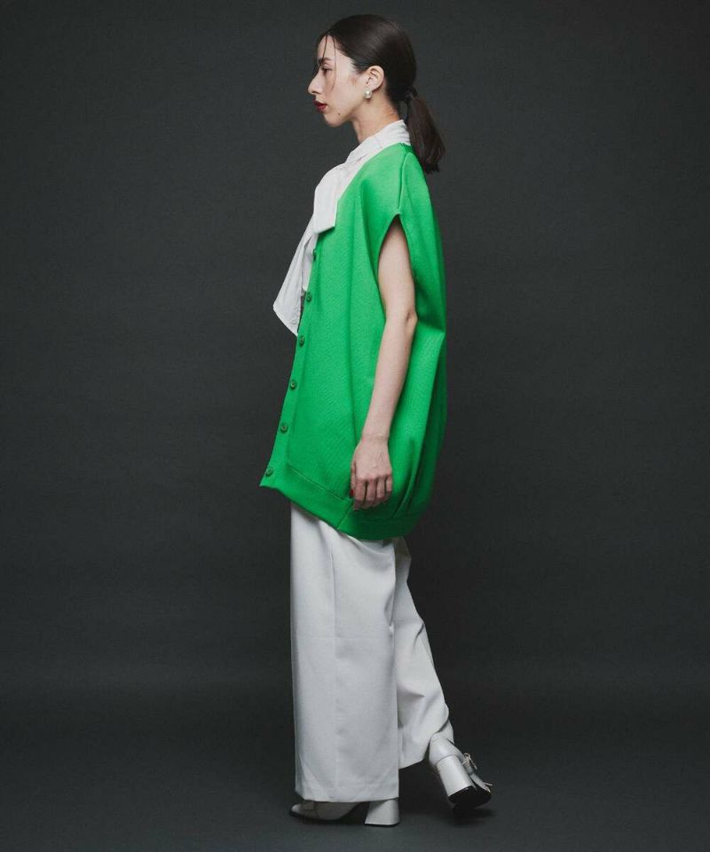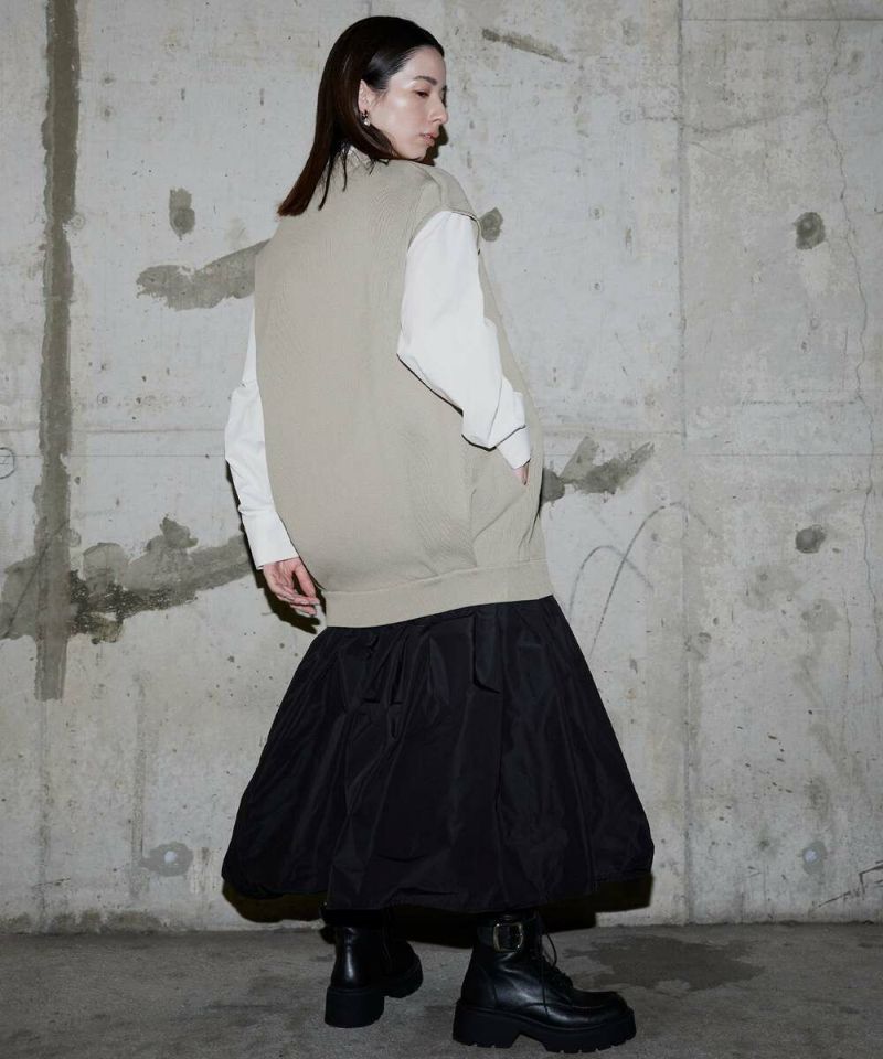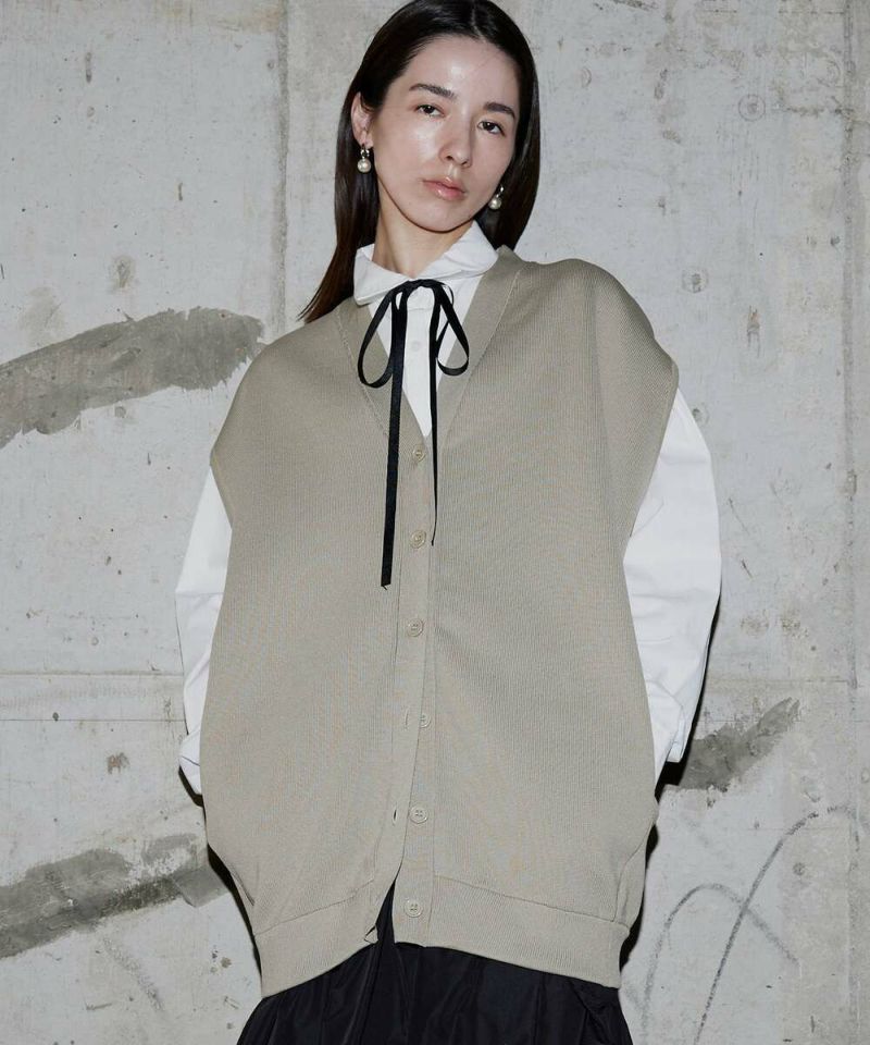 ヒップが隠れるコクーンシルエットに拘った、シンプルながらも洗練されたデザインのニットベスト。ややドライタッチで、触り心地の良いしっかりとしたニット素材。肩幅や二の腕を華奢見えさせてくれるドロップショルダーを採用し、アームを大きめに設定することで、季節に合わせて様々なレイヤードが楽しめる優秀なアイテムです。サイドポケットが立体感をプラスし、深めのVネックで抜け感を演出しました。※素材の性質上、サイズ感に多少誤差がございます。ご了承のほどよろしくお願いいたします。【model】H160 B80 H85