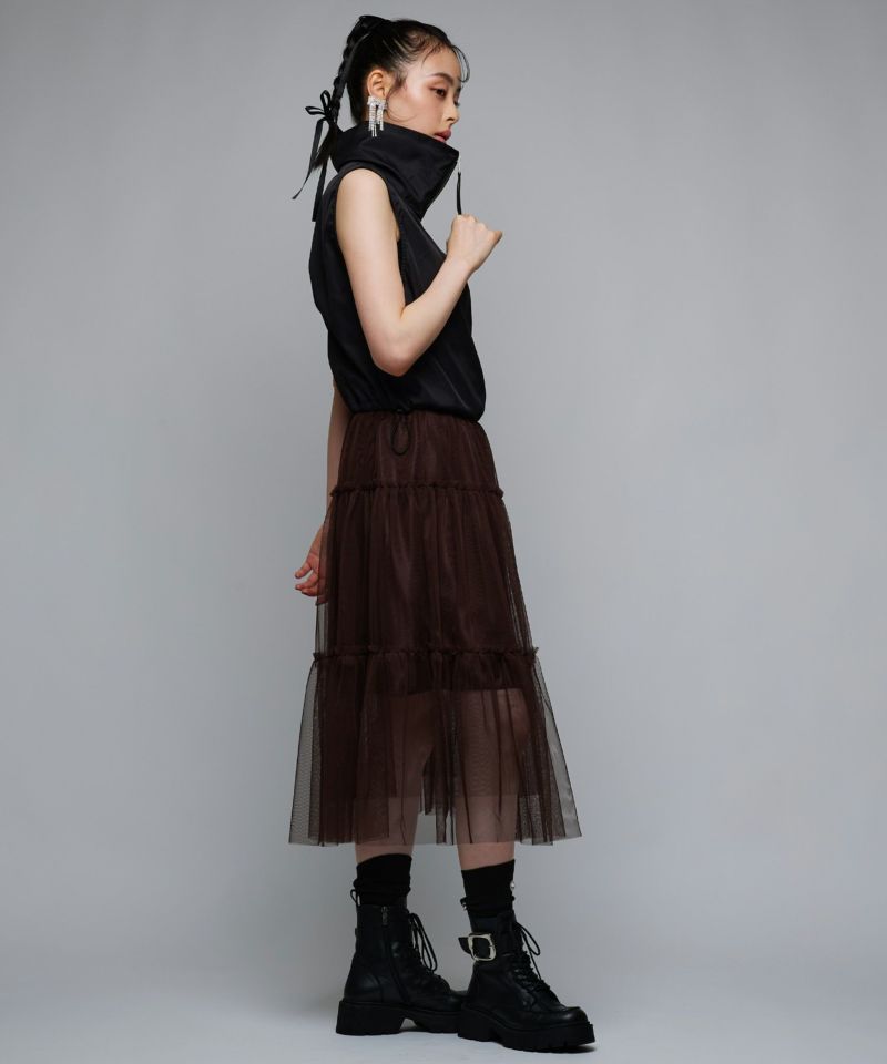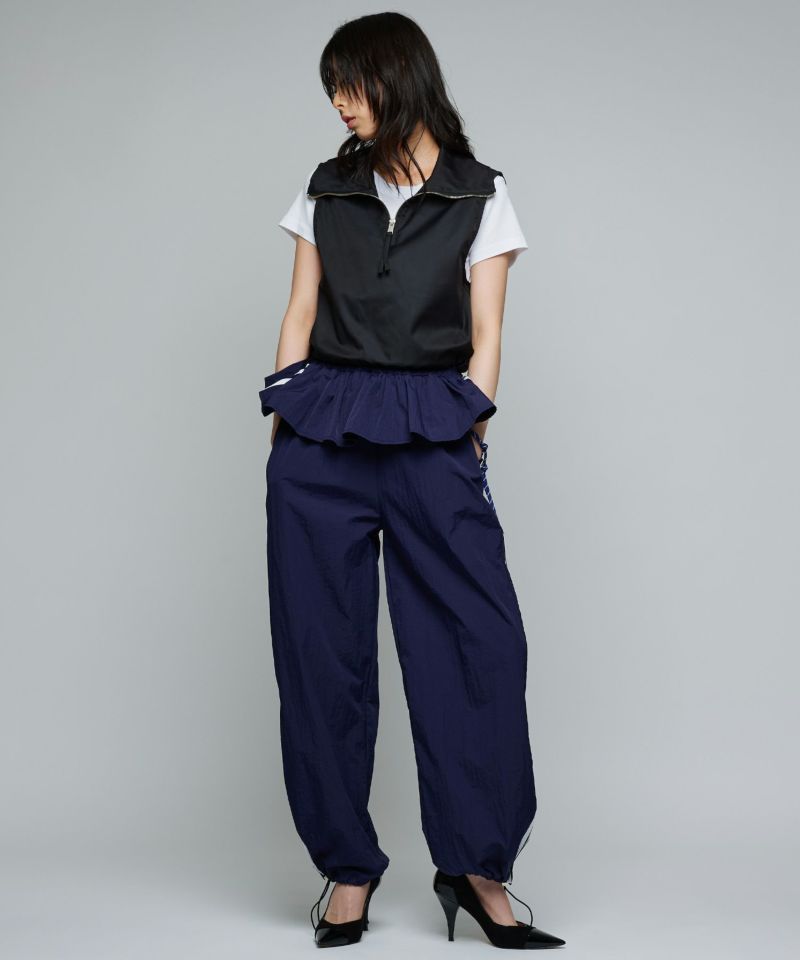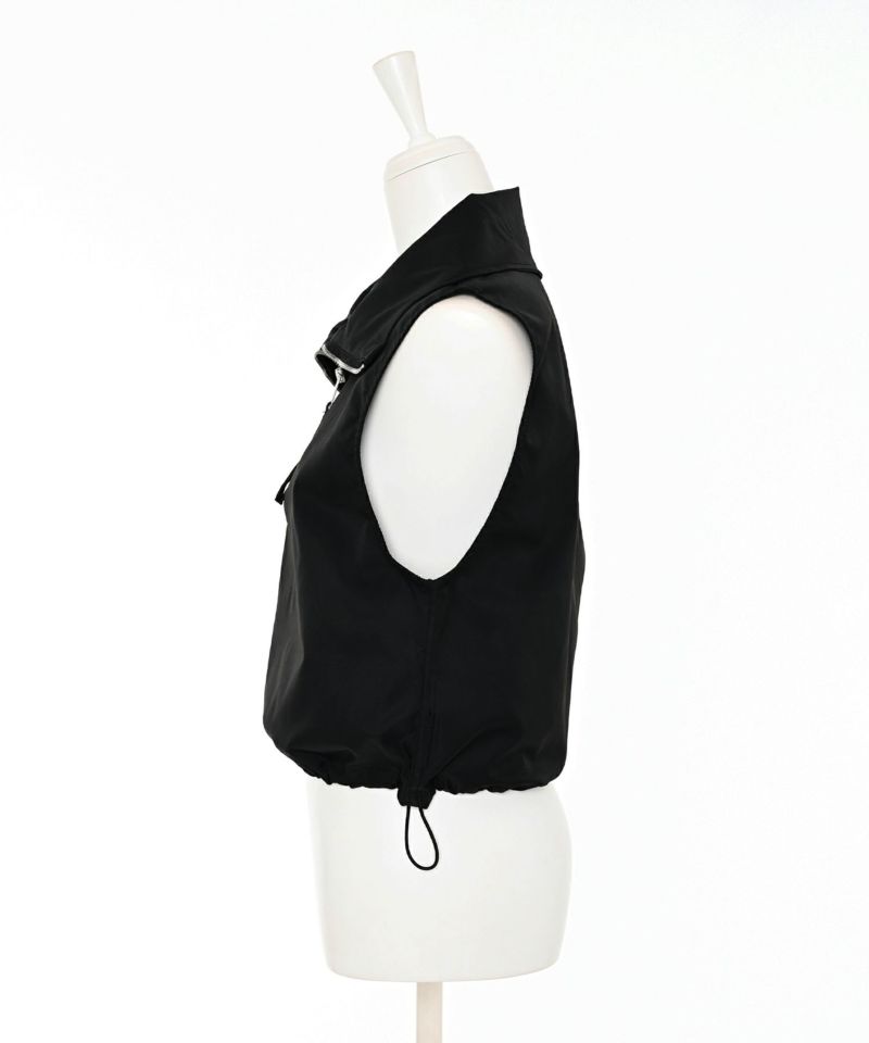 ネックジップがスタイリッシュな印象のトップス。首元のジップは開閉可能で、開けていただくと顔周りがすっきりし、閉じていただくとモードな印象でその日の気分でスタイルを変えていただけます。裾にドローコードがついてるため締めていただくとスタイルアップにも。軽量でモード感満載のつるっとした光沢のある素材を採用。秋口にはインナーにロングTシャツやシアートップスなどをレイヤードしたり、上からジャケット等を羽織るのも◎【model】H165 B78 H83