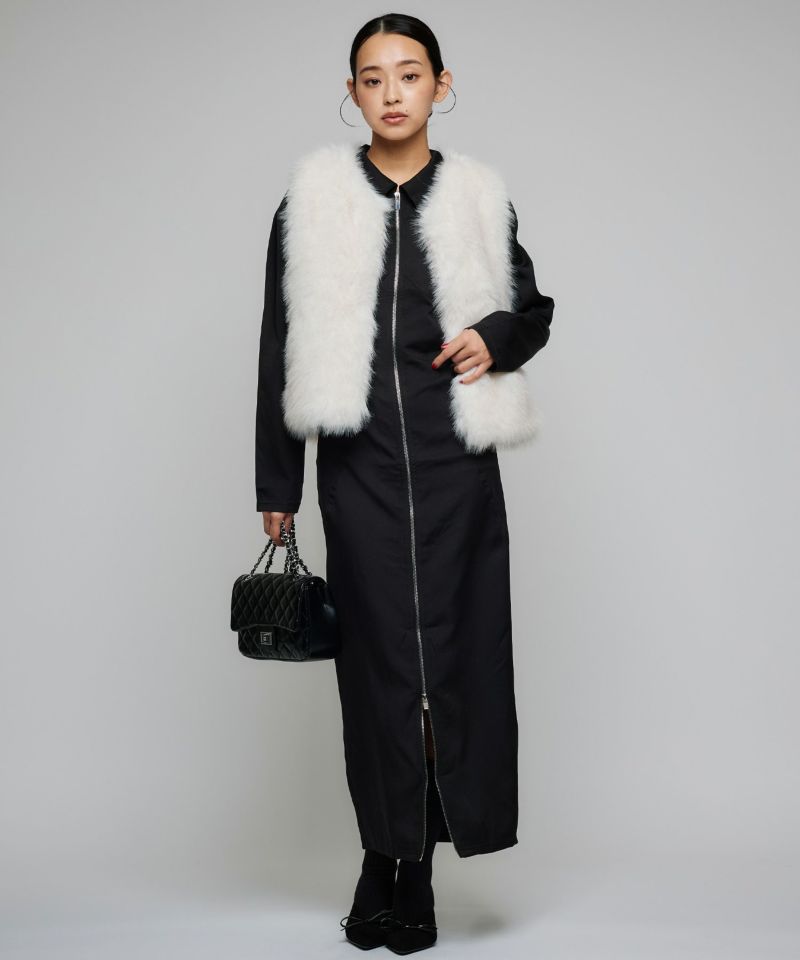 柔らかくフェミニンなオフホワイトと、すっきりシックなブラックの2色で、“可愛い”も“綺麗”も、どちらも叶えたい大人のための一着です。羽織るだけで、華やかな印象になる優秀なファーベスト。