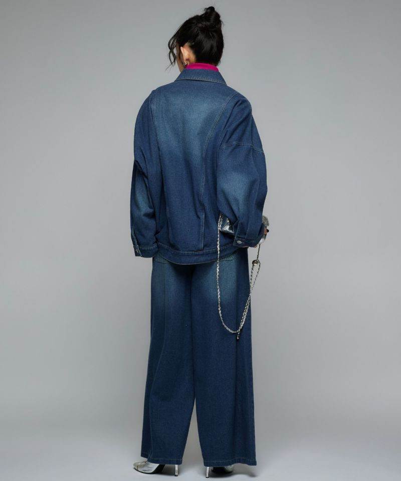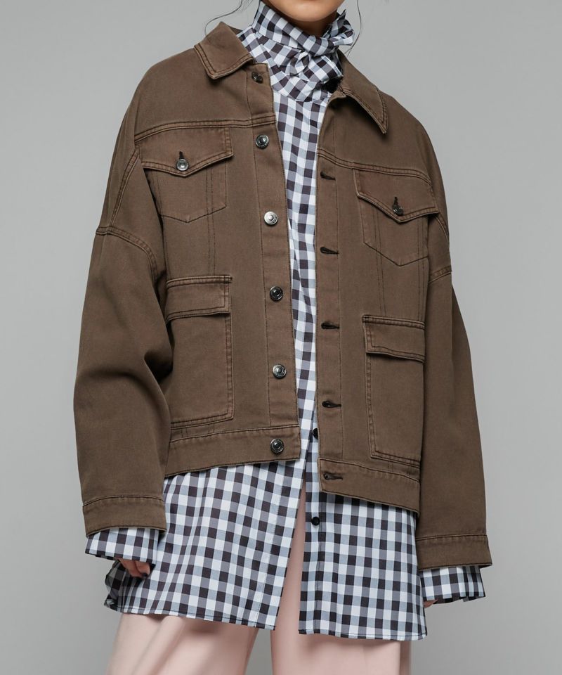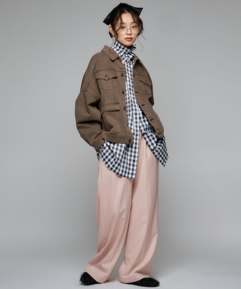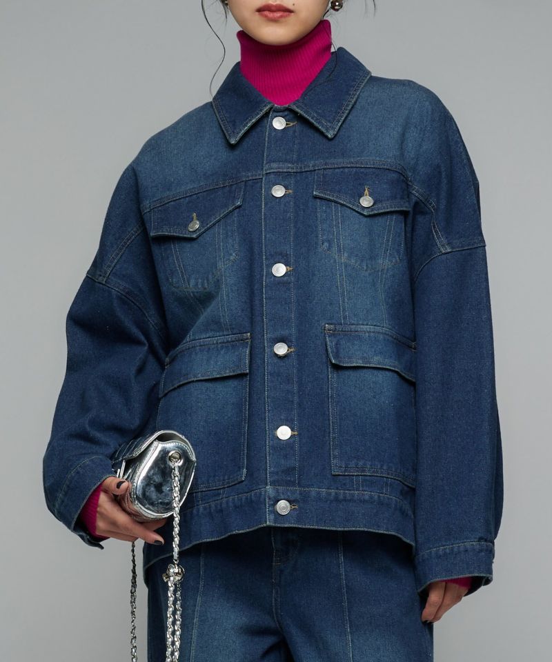 アームホールを広めにとることで、インナーの生地感問わず着用しやすい一枚。厚手のニットやスウェットを合わせていただくのはもちろん、タートルネックニットを合わせて、首元からのチラ見せも◎同素材のペインターデニム(BLU55296401)を合わせてセットアップで着ていただくのもおすすめです。