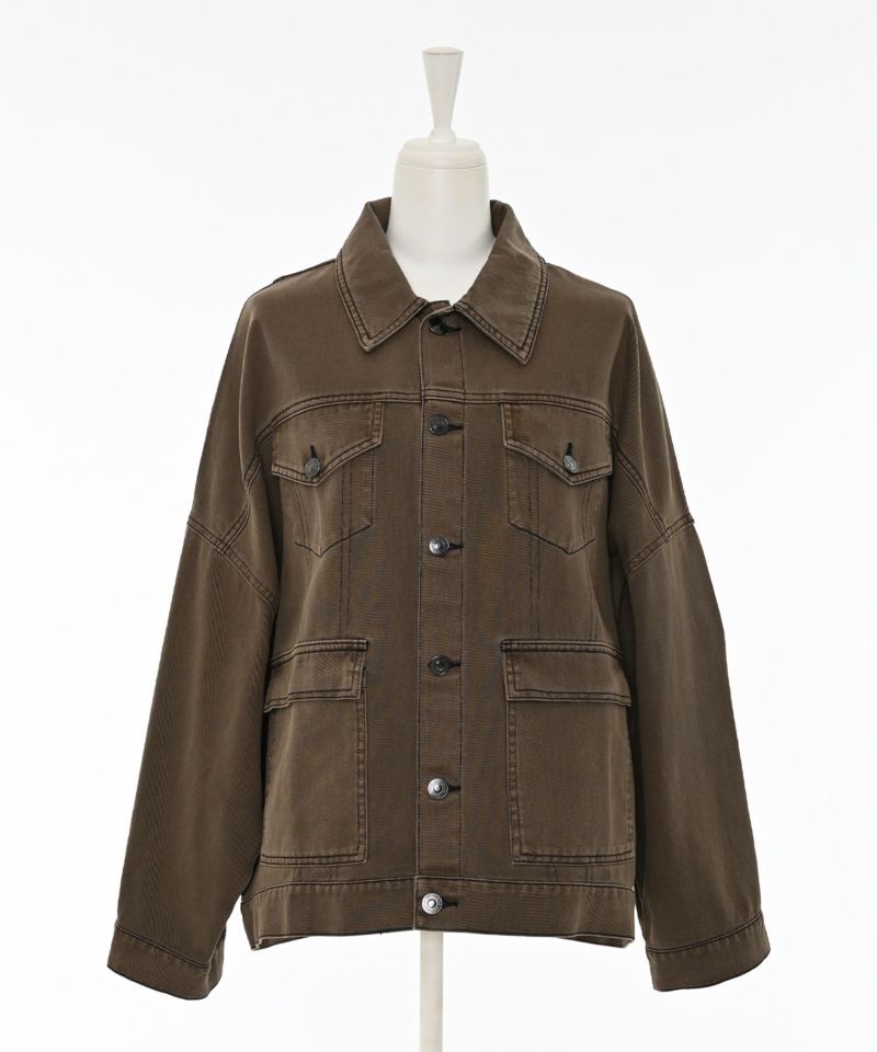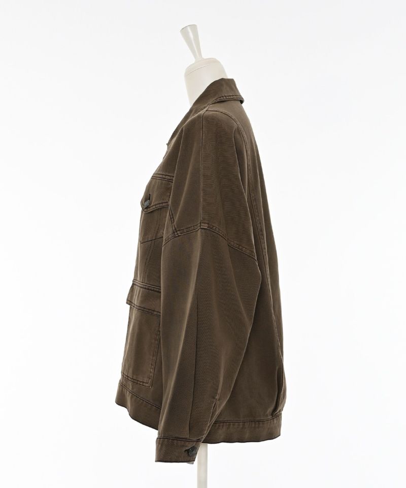2色展開で、ブルーはヴィンテージ加工を施したデニム素材がこなれ感を演出し、ブラウンは深みのある色合いに黒のステッチを効かせてシックに仕上げています。フロントの4つポケットは、上部をフェイクにすることで洗練されたデザイン性を加えています。