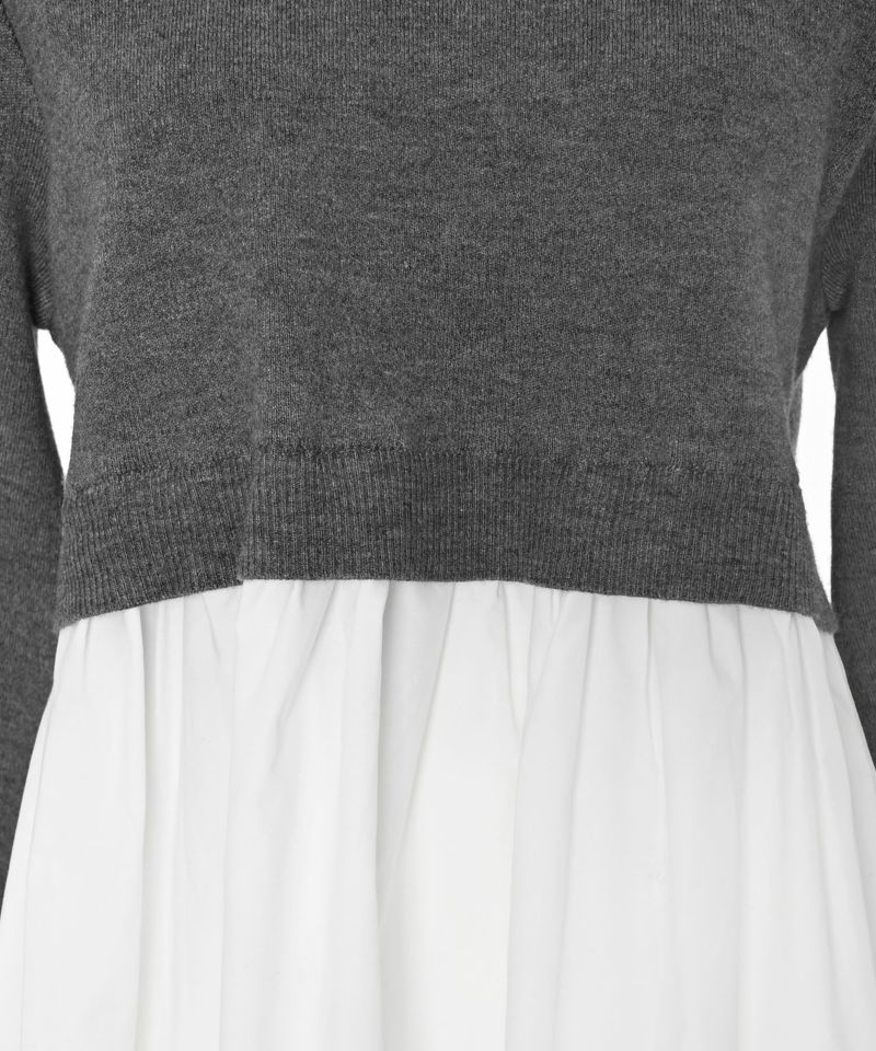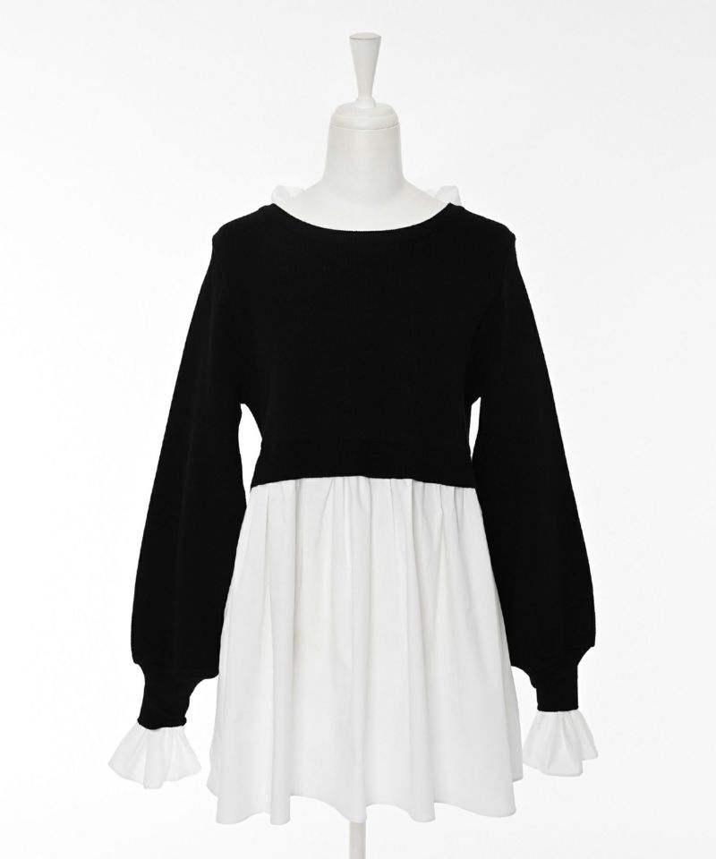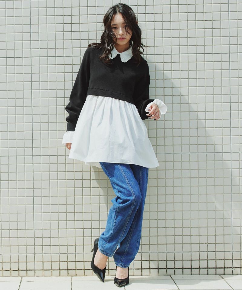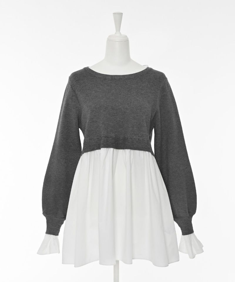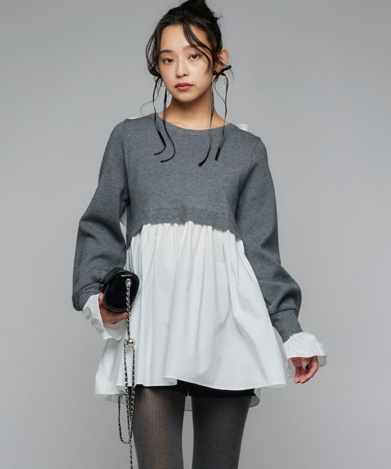 ペプラムシャツとニットトップスがドッキングした、レイヤードデザインのアイテム。裾や袖の絶妙な切り替えがコーディネートにこなれ感をプラスしてくれる一着です。