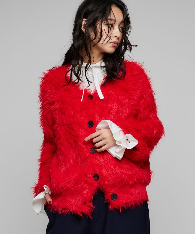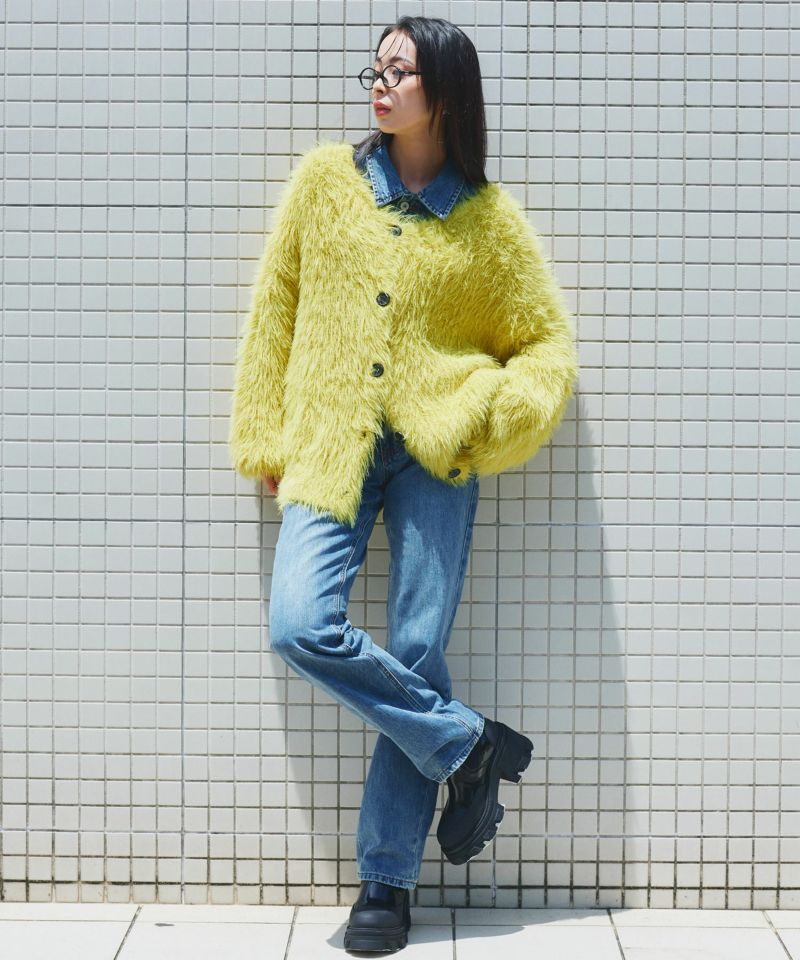 身幅広めのオーバーサイズ設計で体型を問わずゆったりと着られる一着。首元はVネックで顔周りをすっきりと華やかにしてくれます。着丈は腰回りをカバーする安心感のある長さ。シャギー素材ならではの柔らかく膨らみのある質感が、着るだけで暖かみのある印象をプラスします。リラックス感のあるフォルムと素材感で、デイリーからちょっとしたお出かけまで幅広く活躍する一枚です。