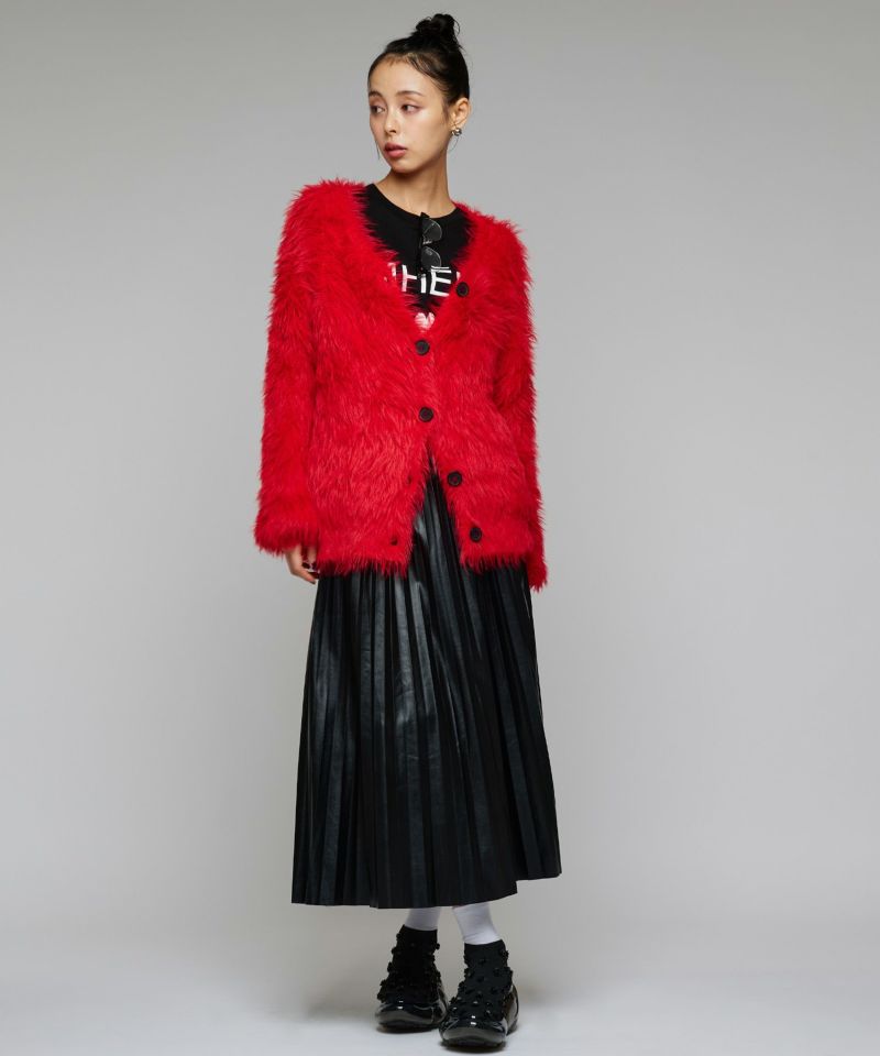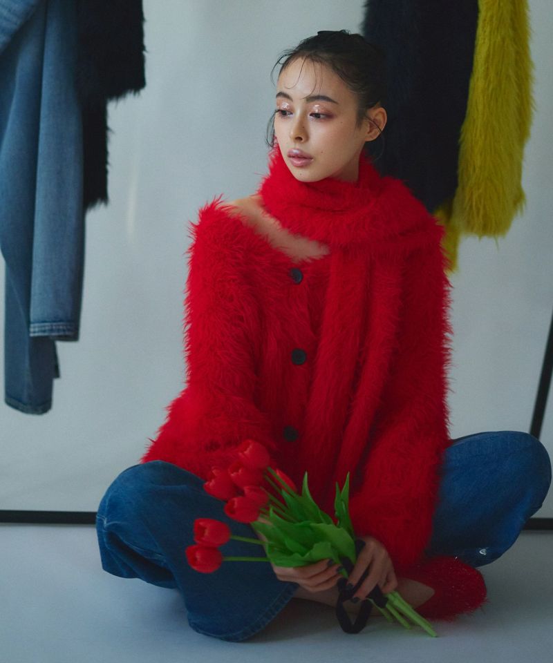 ふんわりとしたシャギー素材で着心地抜群のオーバーサイズニット。袖は長めのデザインで手元に自然な抜け感を演出し、ルーズなシルエットが今っぽい印象に。イエロー、レッド、ブラックの3色展開で、コーディネートの幅も広がります。
