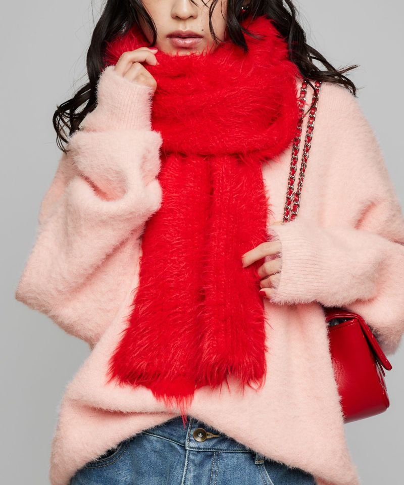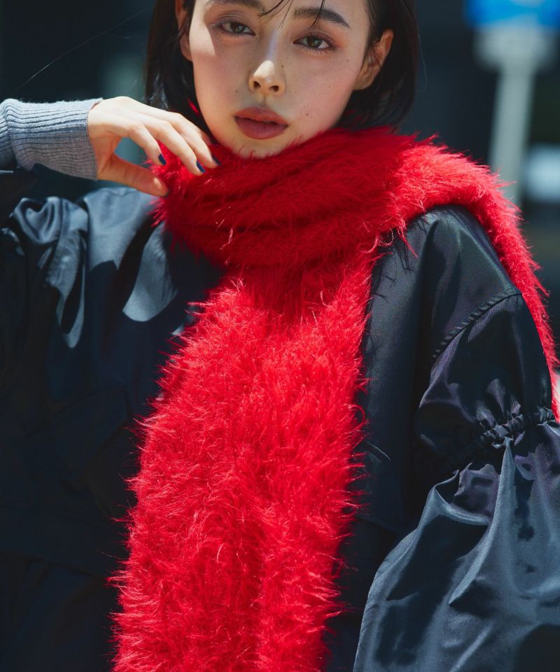 毛足の長い素材感で、ふんわりとした暖かさを感じられる大判マフラー。長めの設計になっているため、首元にしっかり巻いてもボリューム感が出てスタイリングのアクセントに。マフラーとしてはもちろん、羽織や膝掛けとしても活躍し、様々なシーンでマルチに使える万能アイテムです。
