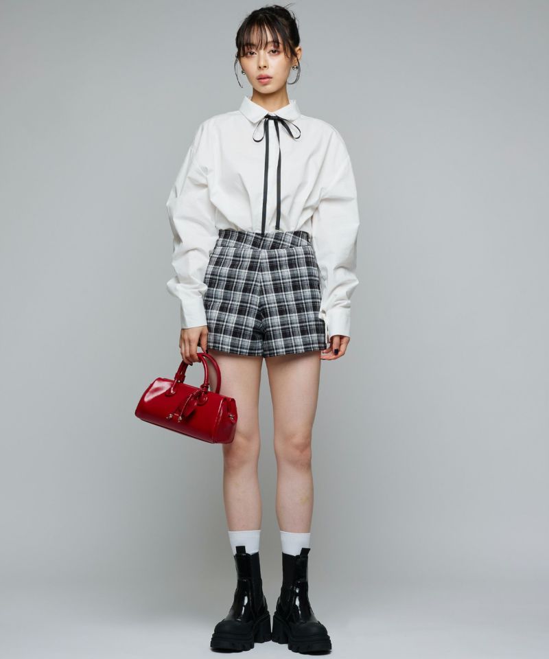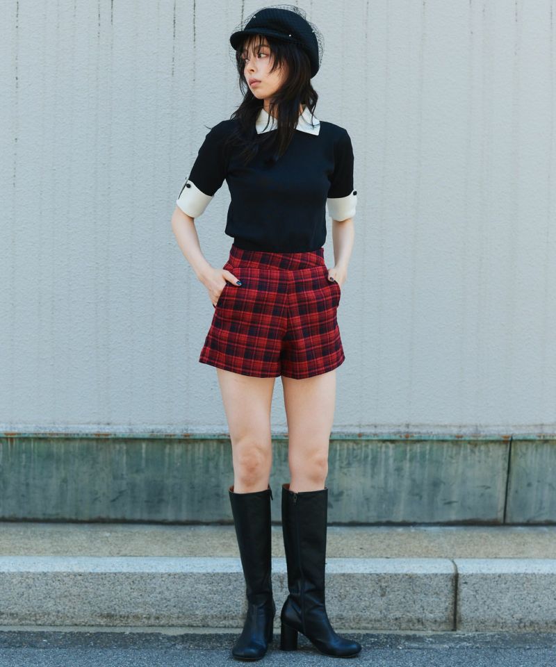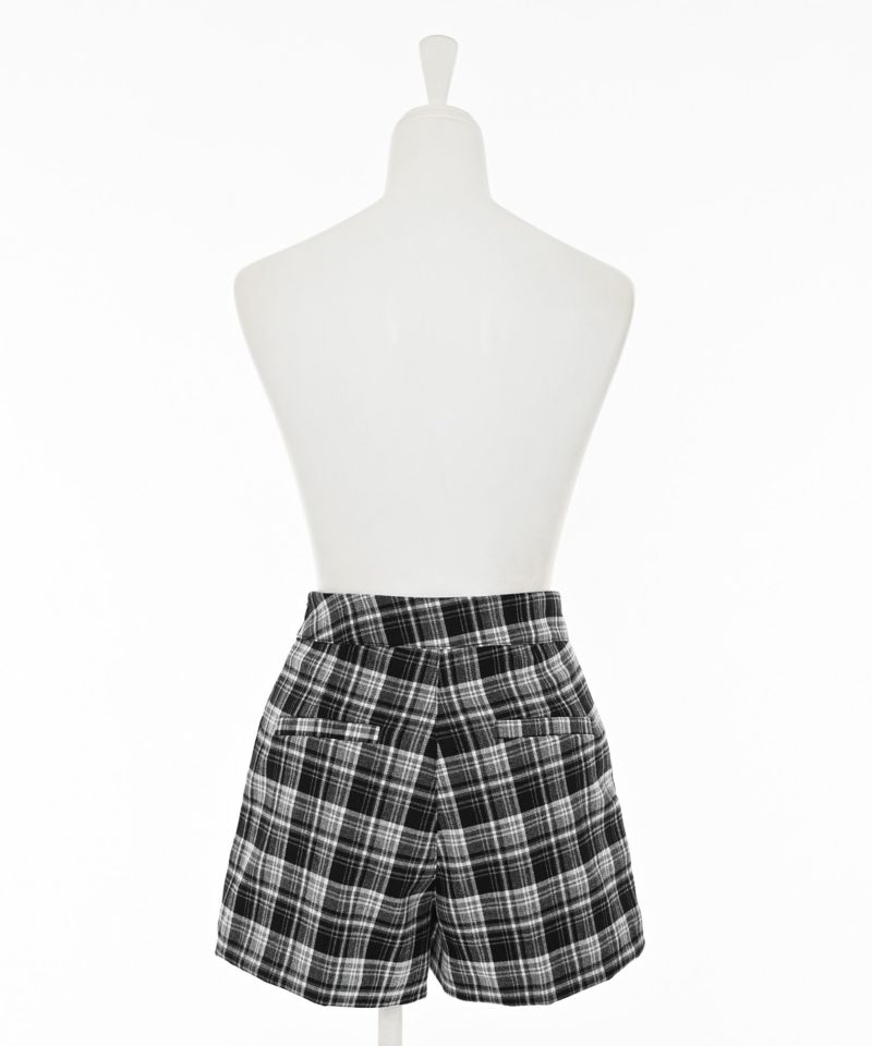 存在感のあるチェック柄が印象的な、レディライクなショートパンツ。コンパクトな丈感で脚をすっきり見せ、モードな印象ながらフェミニンなスタイリングにもぴったりです。