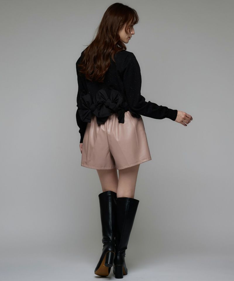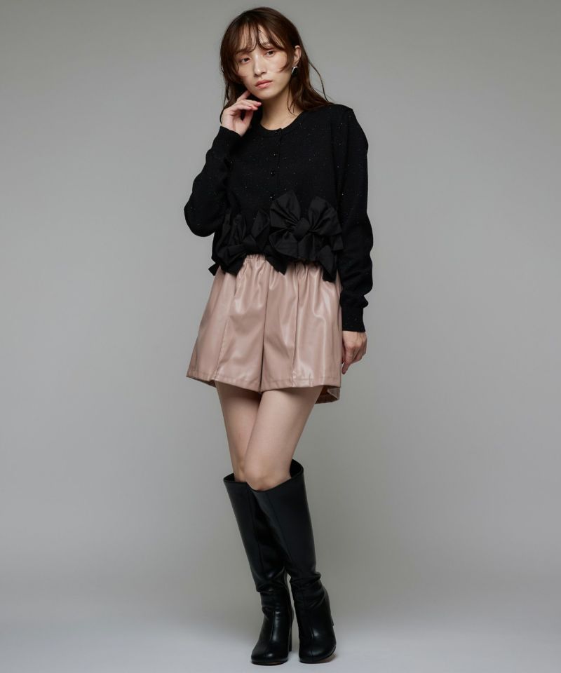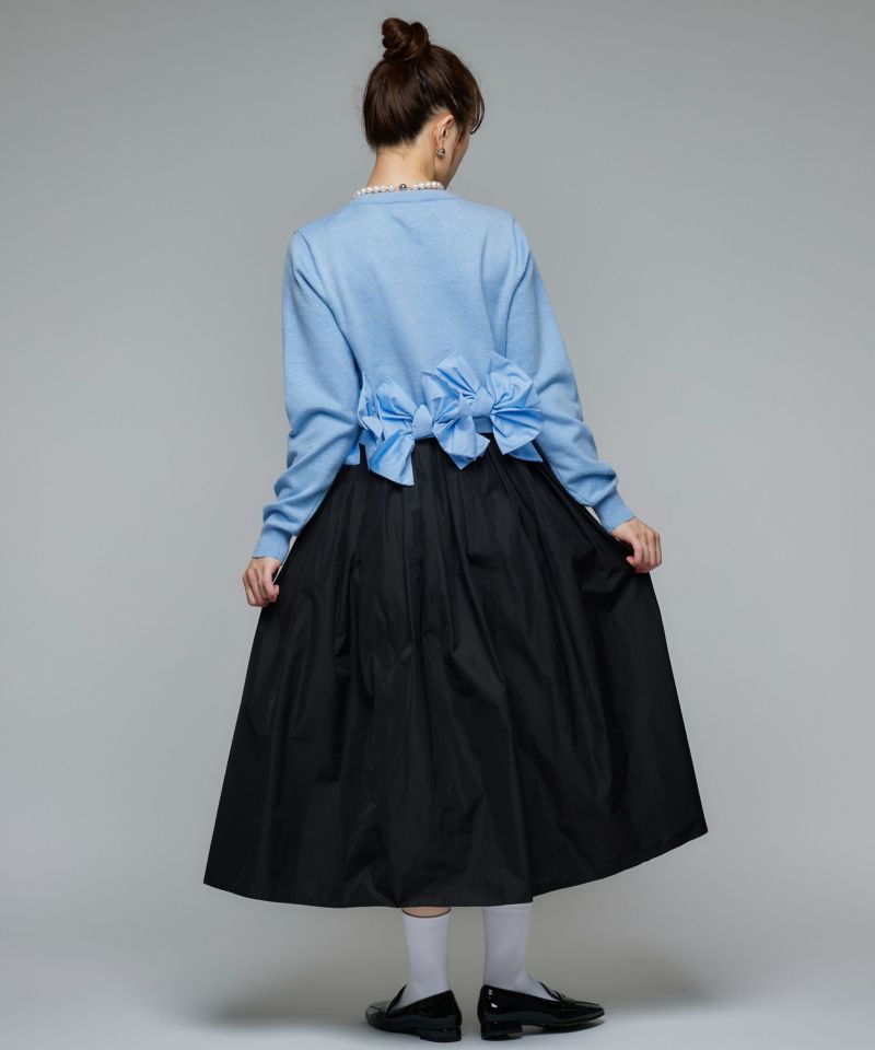 柔らかく肌触りの良いニット素材。程よい厚みと伸縮性があり、身体に優しく沿う着心地で暖かさ◎異素材でリボンが7つ施されていますが、着用時には気にならない重量です。