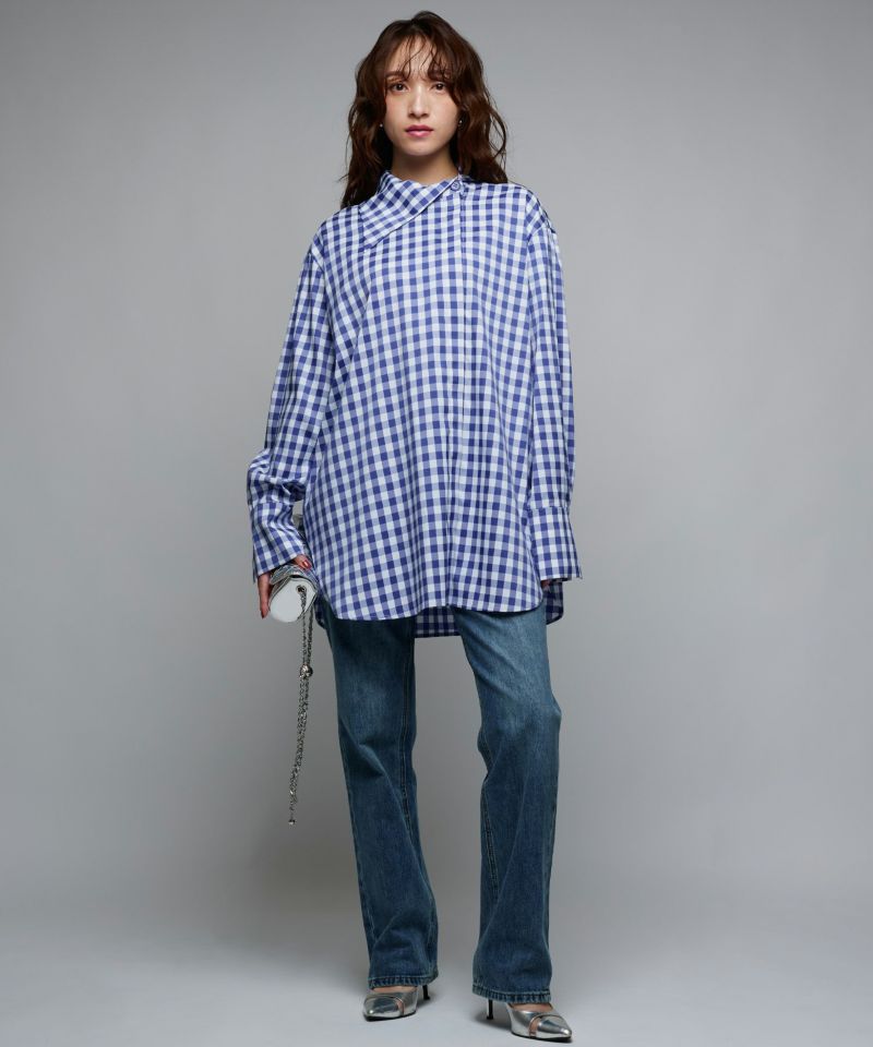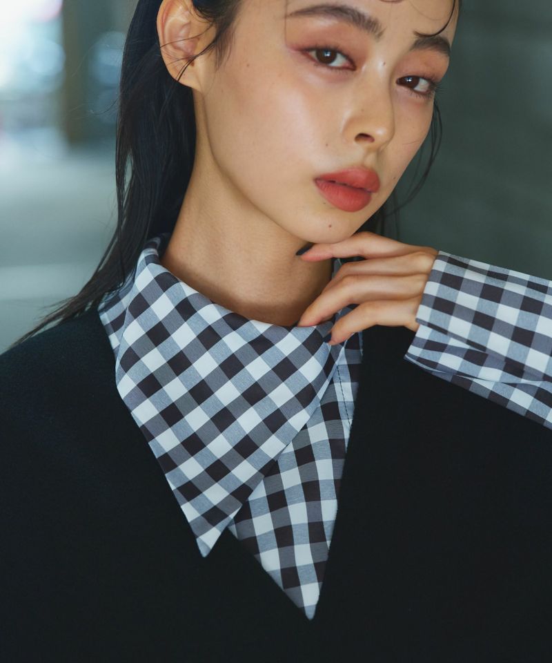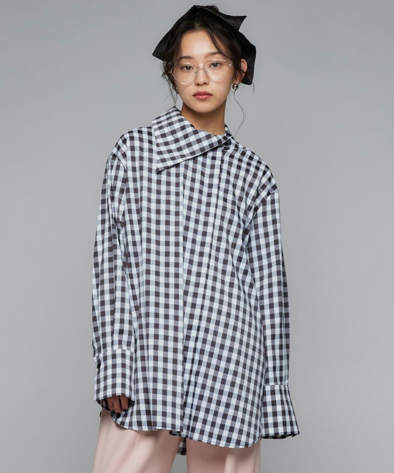 - Buyer design collection - 『リアルに着たいMODE STYLE』をコンセプトに、 バイヤーがデザインやシルエットに拘って企画したアイテム。ミニマルなデザインに拘りを詰め込んだチェックシャツ。シンプルな中にアシンメトリーカラーを取り入れ、程よくゆとりのあるサイジングに設定することで、甘めなギンガムチェック柄でもモードな印象に。ロングシーズン着用していただけるようレイヤードしやすい、軽くて薄めの生地を採用しています。サラッとした着心地良い素材感なので、一枚ではもちろん、ベスト・スウェット・ニット・ジャケットなどから襟元を出してレイヤードスタイルを楽しんでもらえる一枚です。【model】H160 B80 H85 / H165 B78 H83