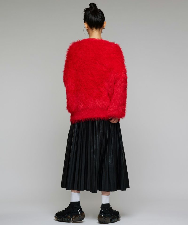 ふんわりとしたシャギー素材で着心地抜群のオーバーサイズニット。袖は長めのデザインで手元に自然な抜け感を演出し、ルーズなシルエットが今っぽい印象に。イエロー、レッド、ブラックの3色展開で、コーディネートの幅も広がります。