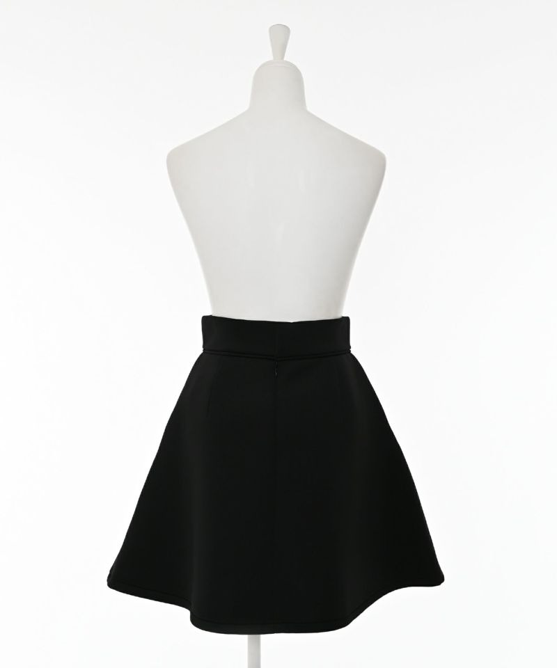 程よいフレアシルエットが腰回りをさりげなくカバーしつつ、フロントの切り替えとハイウエストデザインでスタイルアップを叶える一枚。サイドには便利なポケットを備え、スナップボタンとファスナーで着脱もスムーズです。さらに、裏地にはカラー配色を施し、フェミニンさに遊び心をプラスしました。また、インナーパンツ付きのデザインの為、快適さと品のある見え感を両立します。