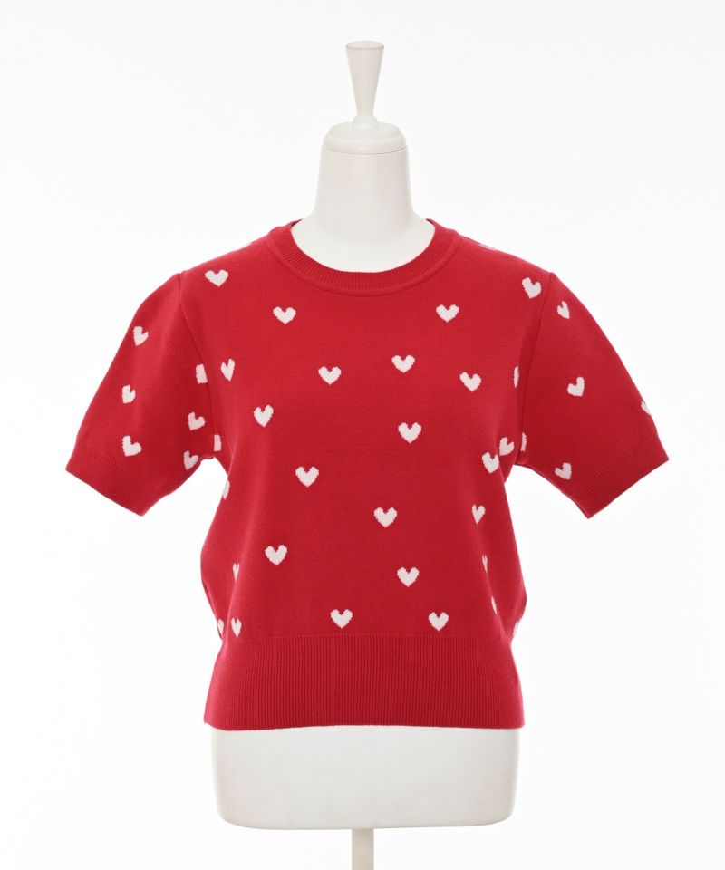全面にハートモチーフが織り込まれた、フェミニンで愛らしいニットトップス。甘さの中にも洗練されたデザイン性を感じさせ、デイリーコーデに華やぎをプラスします。