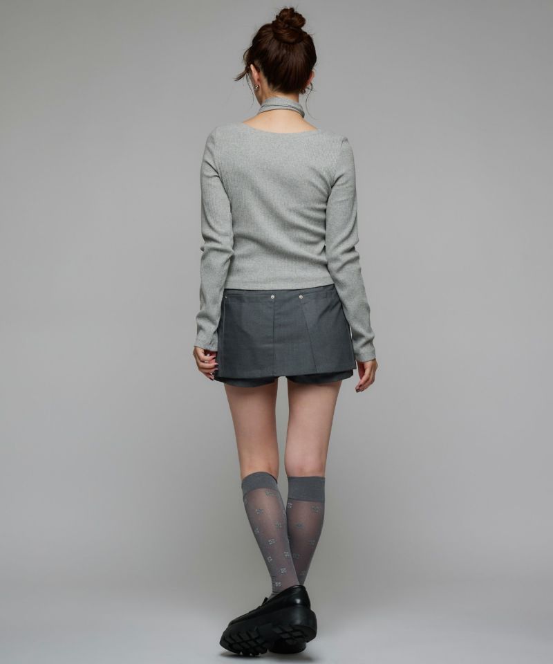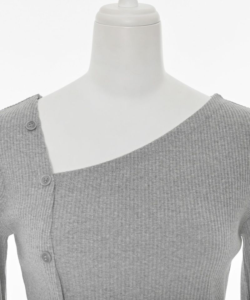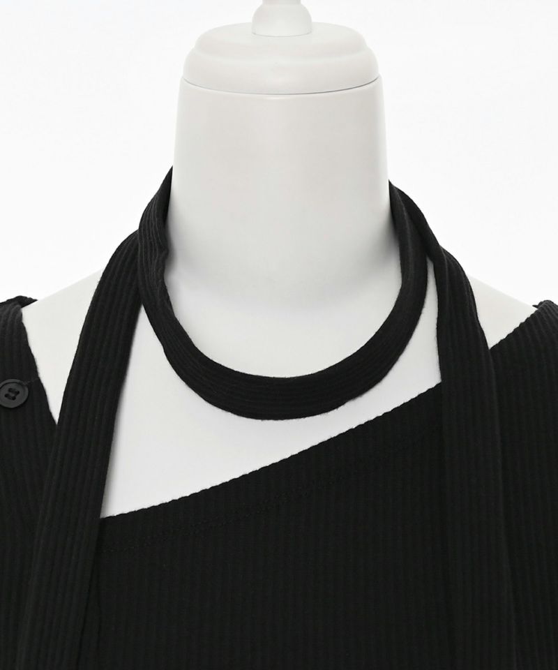 首元のアシンメトリーデザインが程よい遊び心を添えながら、洗練された大人の上品さを引き立てます。シンプルなスタイリングに合わせるだけで、モード感あふれるアクセントに。