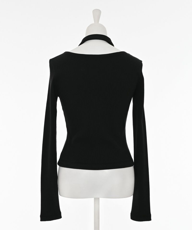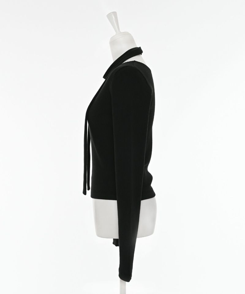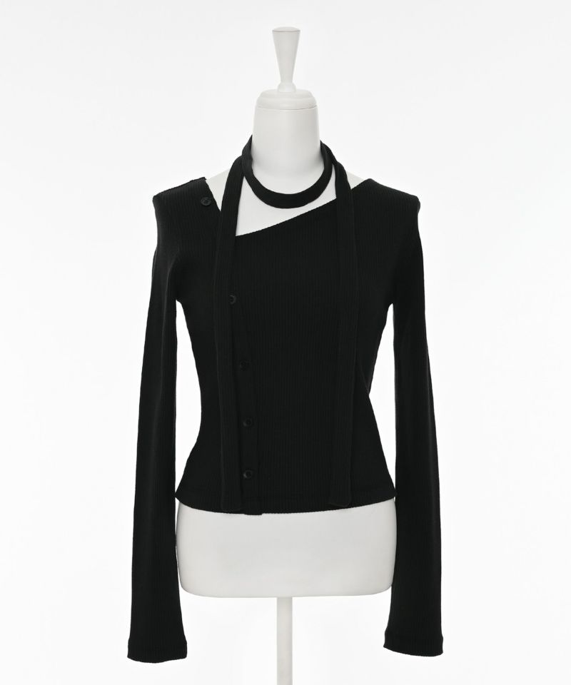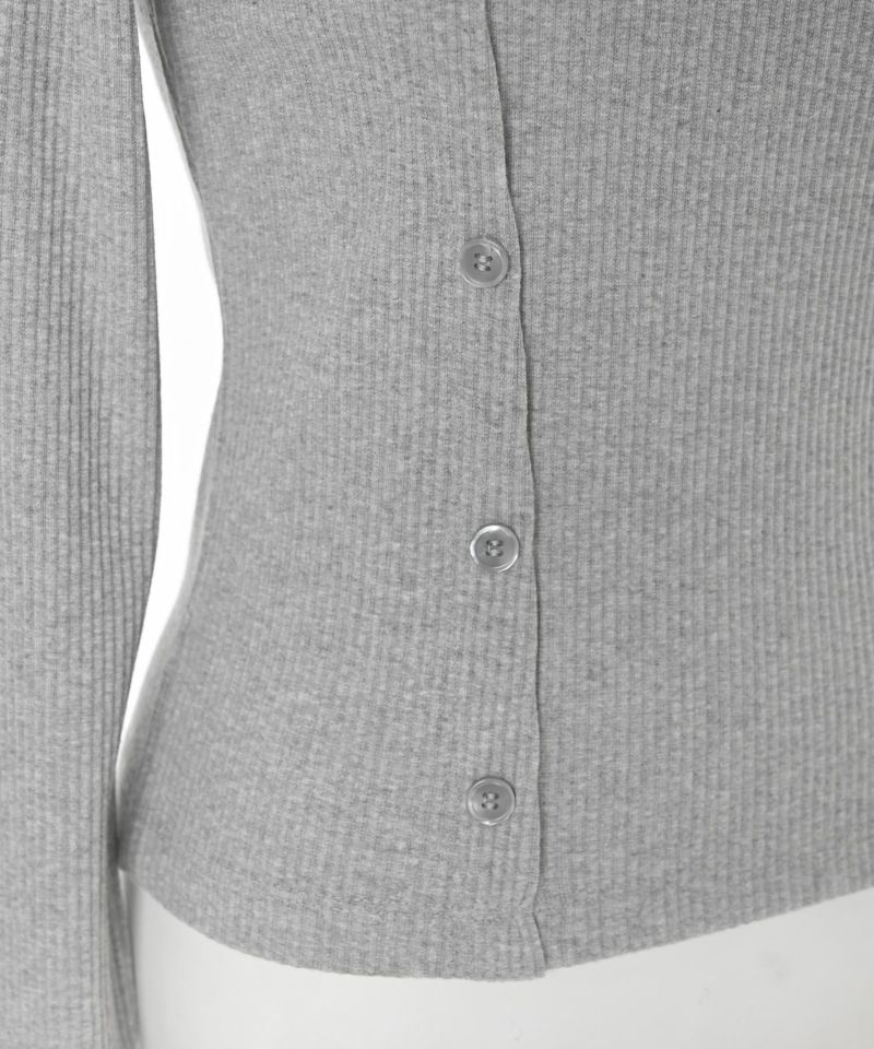 身体に程よくフィットするシルエットに、リブ仕様が縦のラインを強調し細見えを実現。さらに長めに設計された袖丈が、よりスタイリッシュなバランスを演出します。ショルダー部分から裾へと続くデザインボタンの切り替えが、立体感をプラスし、野暮ったさを感じさせないシャープな印象に。付属のリボンで首元に華やかさをプラスします。