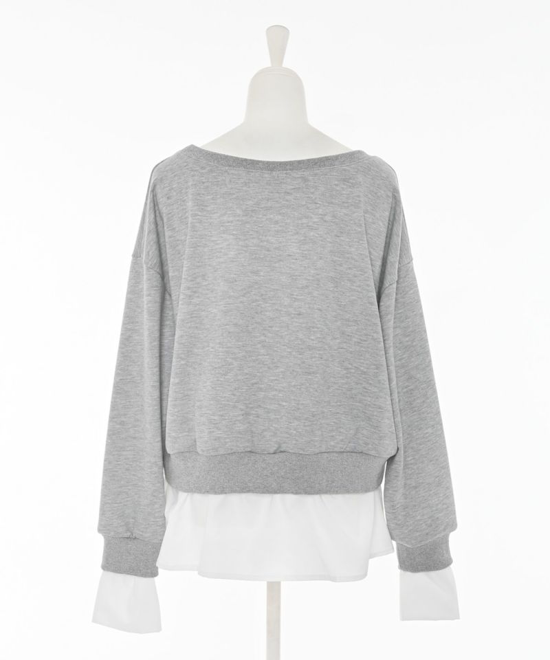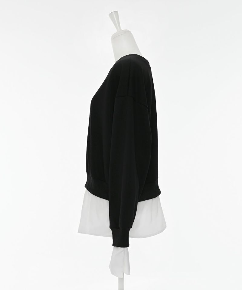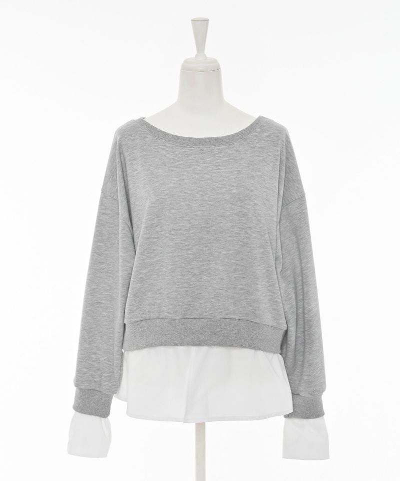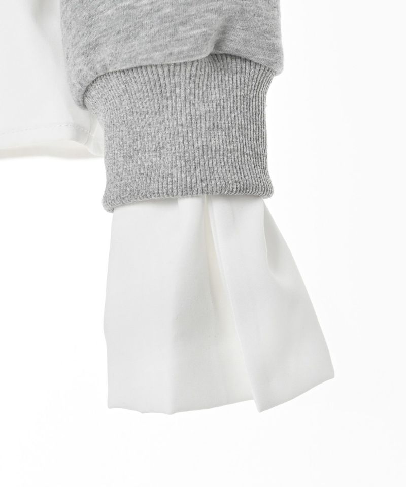 まるでスウェットとシャツを掛け合わせたようなドッキングデザインが魅力のトップス。異素材のコンビネーションがモードな印象を引き立て、コーディネートに新鮮なアクセントをプラスします。