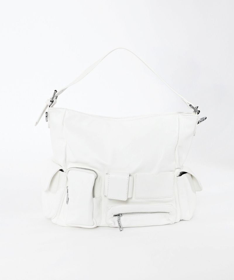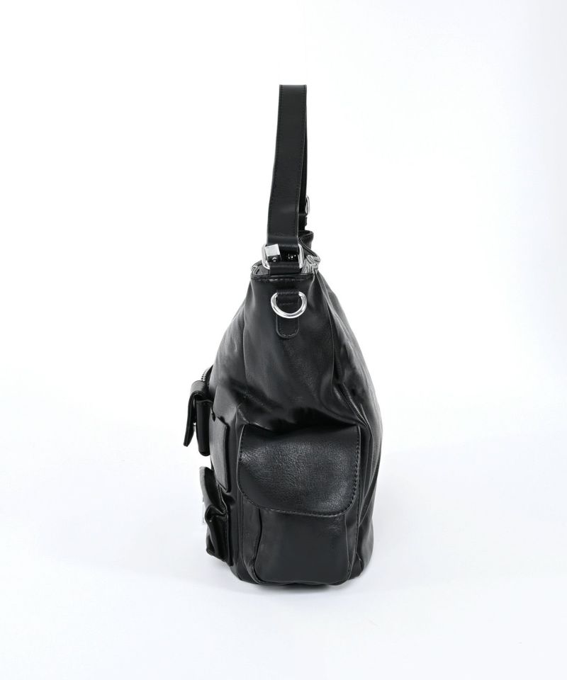フロント部分にサイズ違いのポケット4つ(小物・ペンケース・イヤフォン・カード入れ)とサイドポケットが2つ。内側にもポケットが付属されているコンパクトながら大容量バッグ。ショルダー部分が2WAYで用意されているので、スタイリングに合わせて変えていただけるため、普段のお出かけから1泊程度の旅行にも、1つ持っておくと重宝するアイテム。