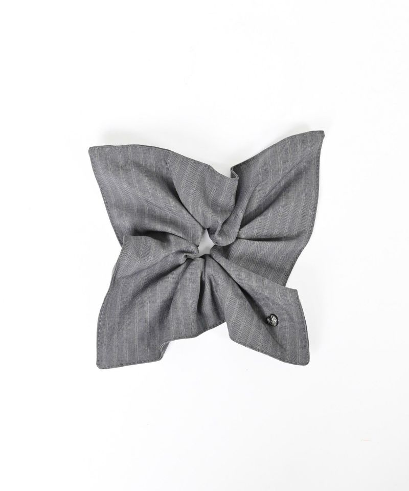スクエア形に仕上げたシュシュ。カラー毎に素材感が違い、ブラックカラーは光沢感のあるつるっとした質感で、グレーはストライプデザインが目を惹くサラッとした質感を採用。印象的なシルエットでありながら、普段のスタイリングに馴染みやすいデザインで大人可愛く今らしいヘアアレンジに。※ブラックにはメタル素材のハートモチーフ付いておりません。