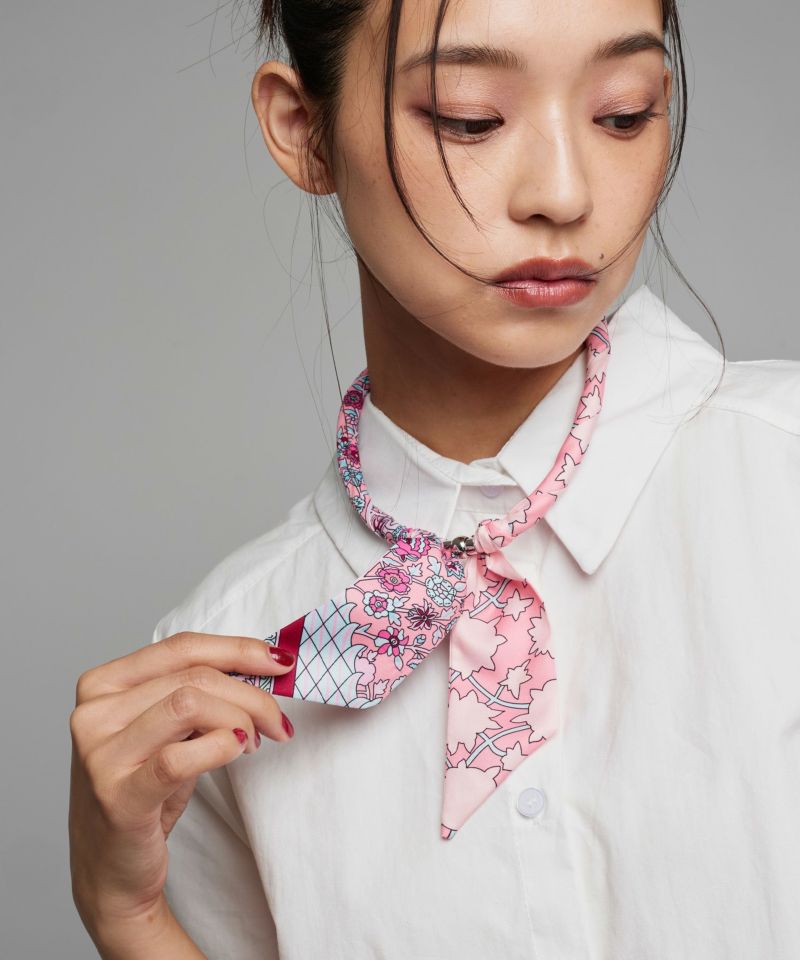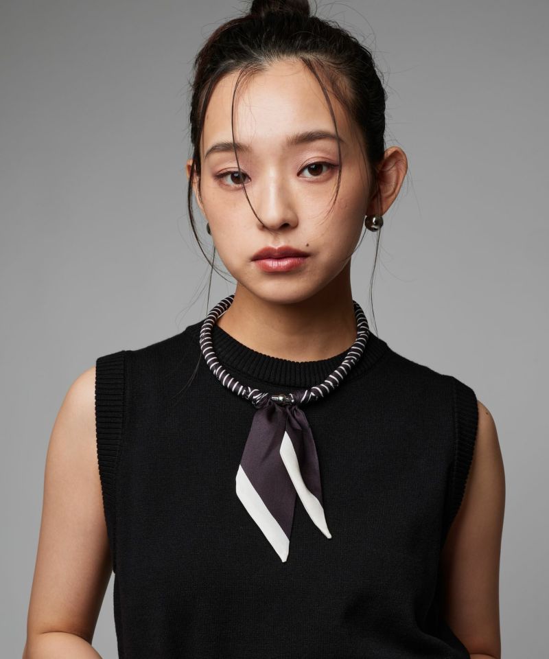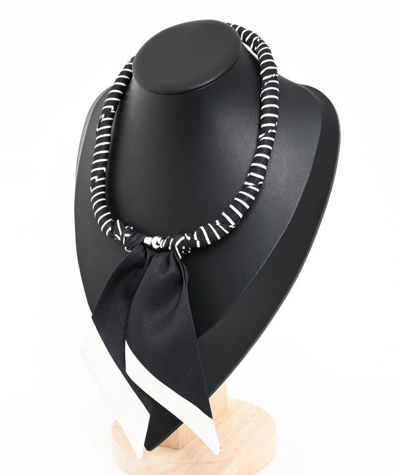 磁石で簡単に装着できる首元彩るスカーフ調ネックレス。首に負担のない軽さで、気軽にスカーフアイテムを楽しめます。普段のシンプルなトップスにプラスするだけで、お洒落度アップする万能アイテム。