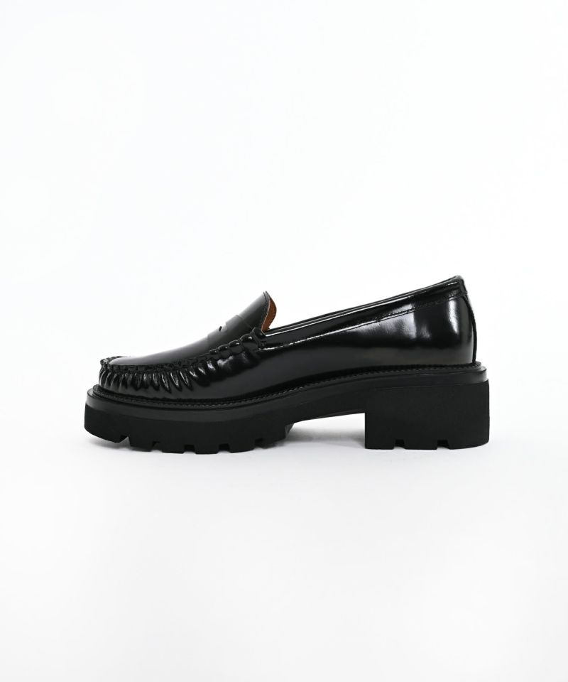 端正なフォルムで仕立てたシンプルなローファー。つま先に寄せを入れる事で、さりげない立体感と柔らかな表情を演出します。すっきりとしたシルエットの中に程よい存在感があり、上品さと抜け感を両立。無駄のないデザインながら、細部のディテールが印象に残る一足です。