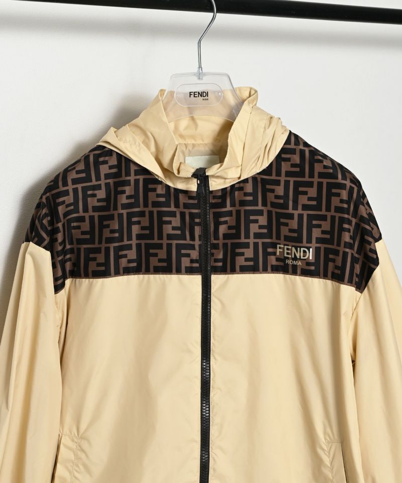 【ポイント】 ・ベージュのナイロン仕立て・フードとジップを備えたウィンドブレーカージャケット・軽くてなめらかな素材・裾はドローコード付き・サイドポケットあり 【FENDI】 ファー&レザーの専門店として、1925年にローマで創業した Fendi(フェンディ)。世界で最も有名なラグジュアリーブランドの一つに成長した現在でも、創業当時のビジョンに根差した真摯なクラフツマンシップを体現しています。 【メーカー品名 / 型番】 ナイロン ジュニア ウィンドブレーカージャケット / JUA233AS56F1P2N