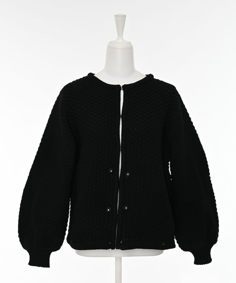 肉厚なニットで仕立てたカーディガンに、フェイクファーをドッキングした華やかな一枚。袖の裾にかけてふんわりと広がるシルエットが、女性らしいやわらかさを演出し、ノーカラーのデザインが顔まわりをすっきりと見せます。フェイクファーはスナップボタンで取り外し可能で、ご自宅で手洗いが出来るためお手入れしやすいのも魅力。留め具にはホックを採用し、フロントラインをすっきりと仕上げました。羽織るだけでスタイリングを華やかに引き立ててくれる、存在感のあるアイテムです。