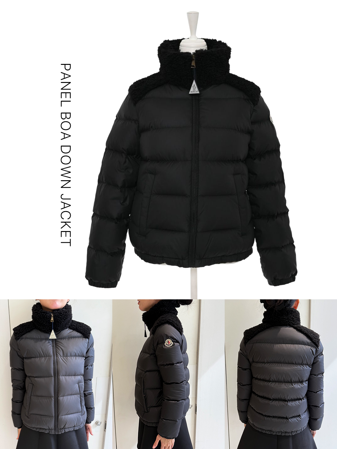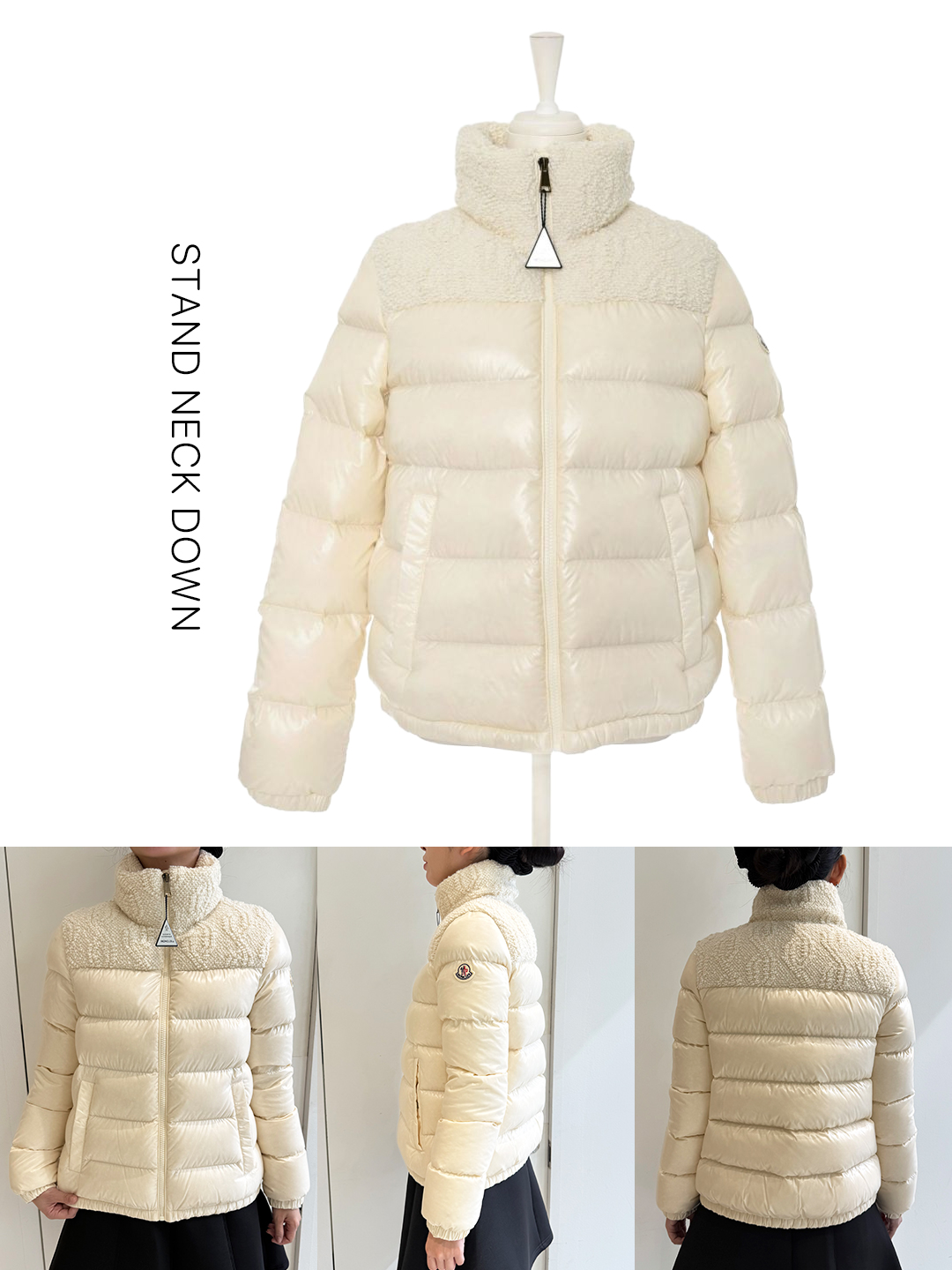 マットな質感の上質ナイロン素材に、ボア調ウールのヨークを組み合わせたショートダウンジャケット。ふっくらとしたシルエットながら軽量で、重さを感じさせずにしっかりと保温。首まわりまで包み込むハイネックデザインが冷気を防ぎ、暖かく快適な着心地を叶えます。ネックとショルダーに施されたボア切り替えが、柔らかさと高級感をプラス。サイドのウエルトポケットもさりげないアクセントに。