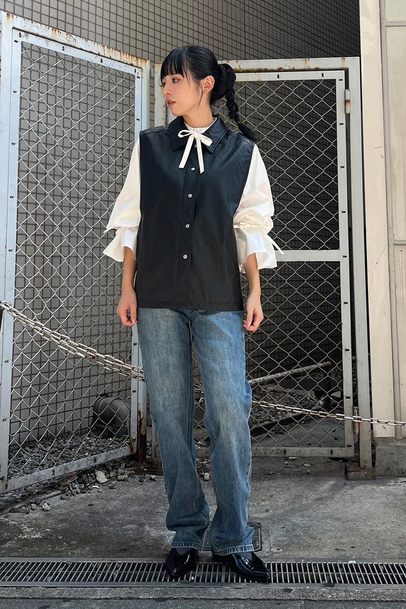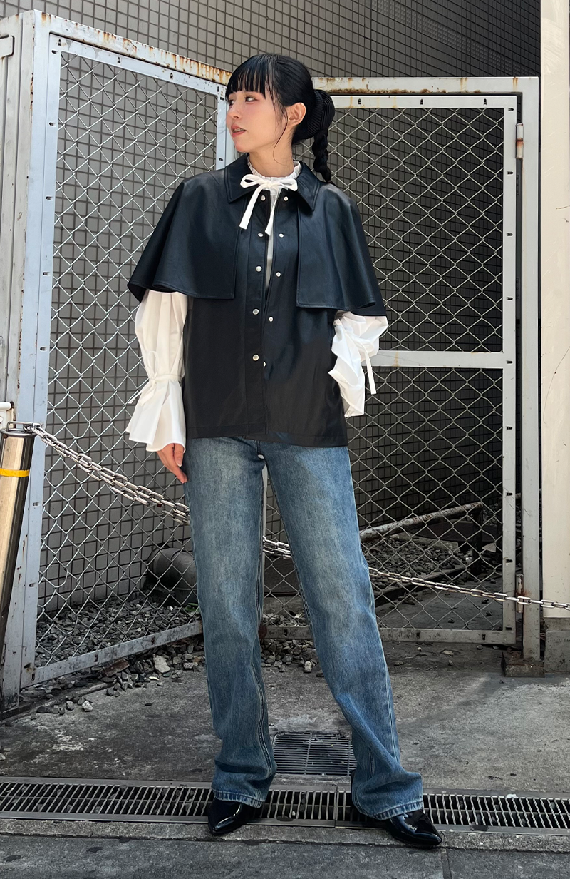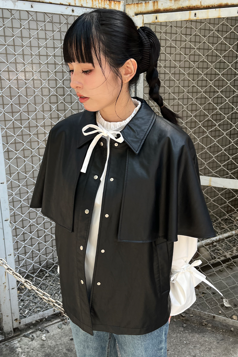 シャツベストとケープを掛け合わせた、レイヤードデザインがモード感漂うアイテム。ベストとケープは単品でも着用できるのでコーディネートの幅も広がります。