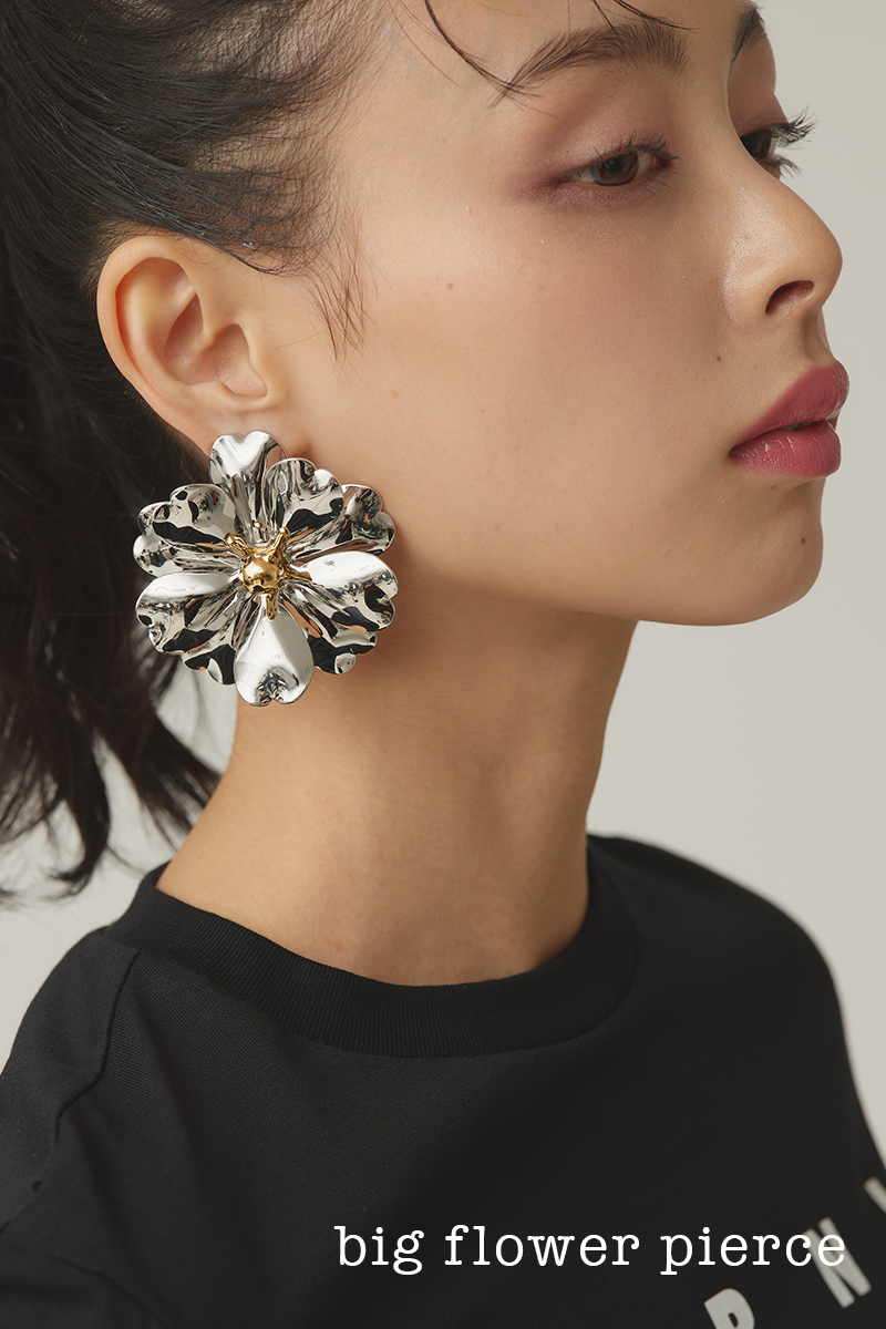 洗練とクールさ。シャープな輝きが、装いをモードに引き締めるシルバーピアス。