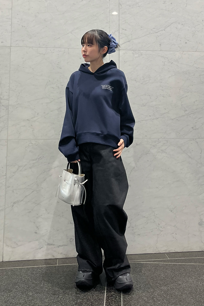 シンプルだからこそ、着こなしの幅が広がるダンボール刺繍パーカー。マニッシュにもフェミニンにも寄り添い、日常のスタイルを更新してくれます。
